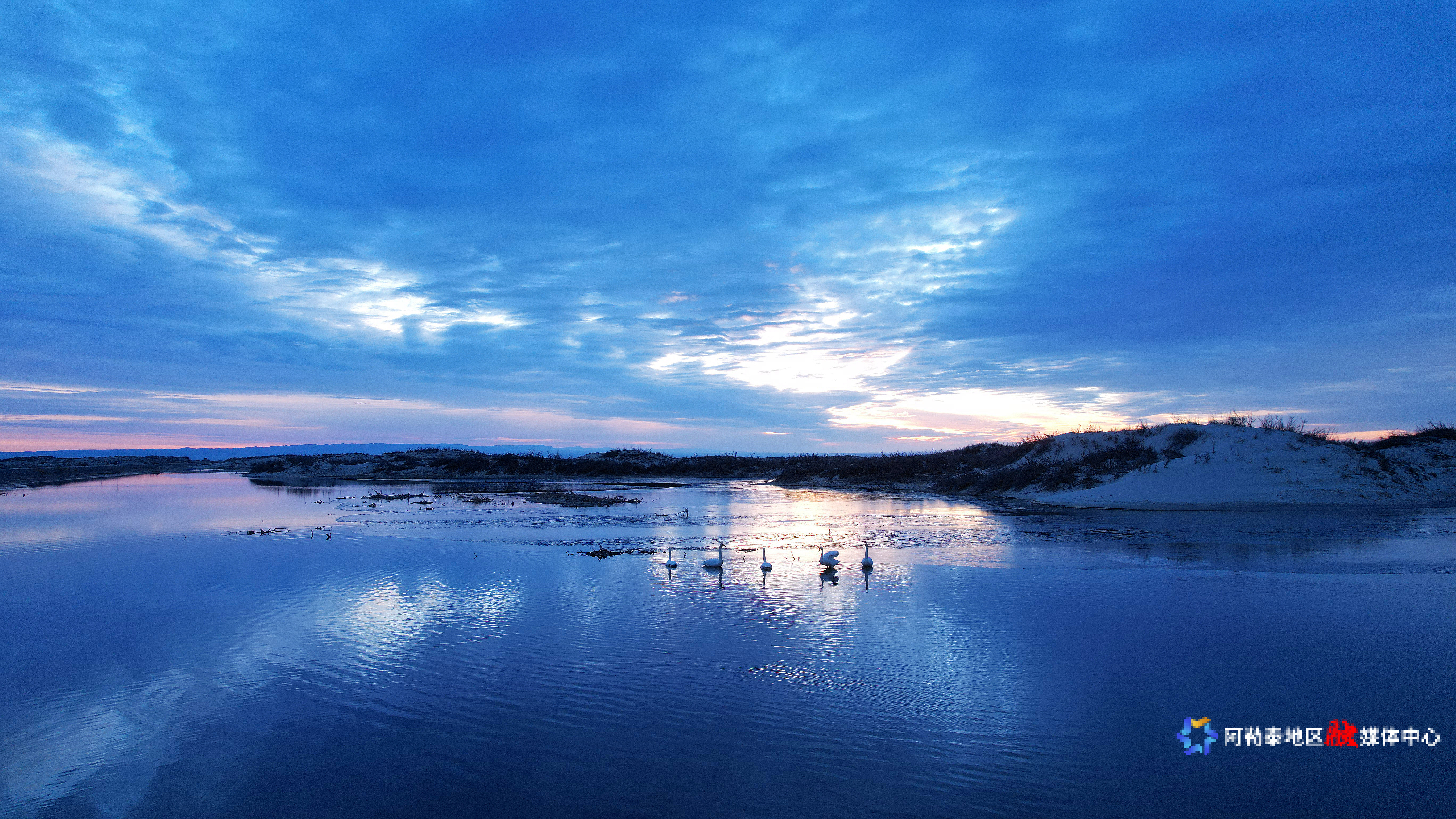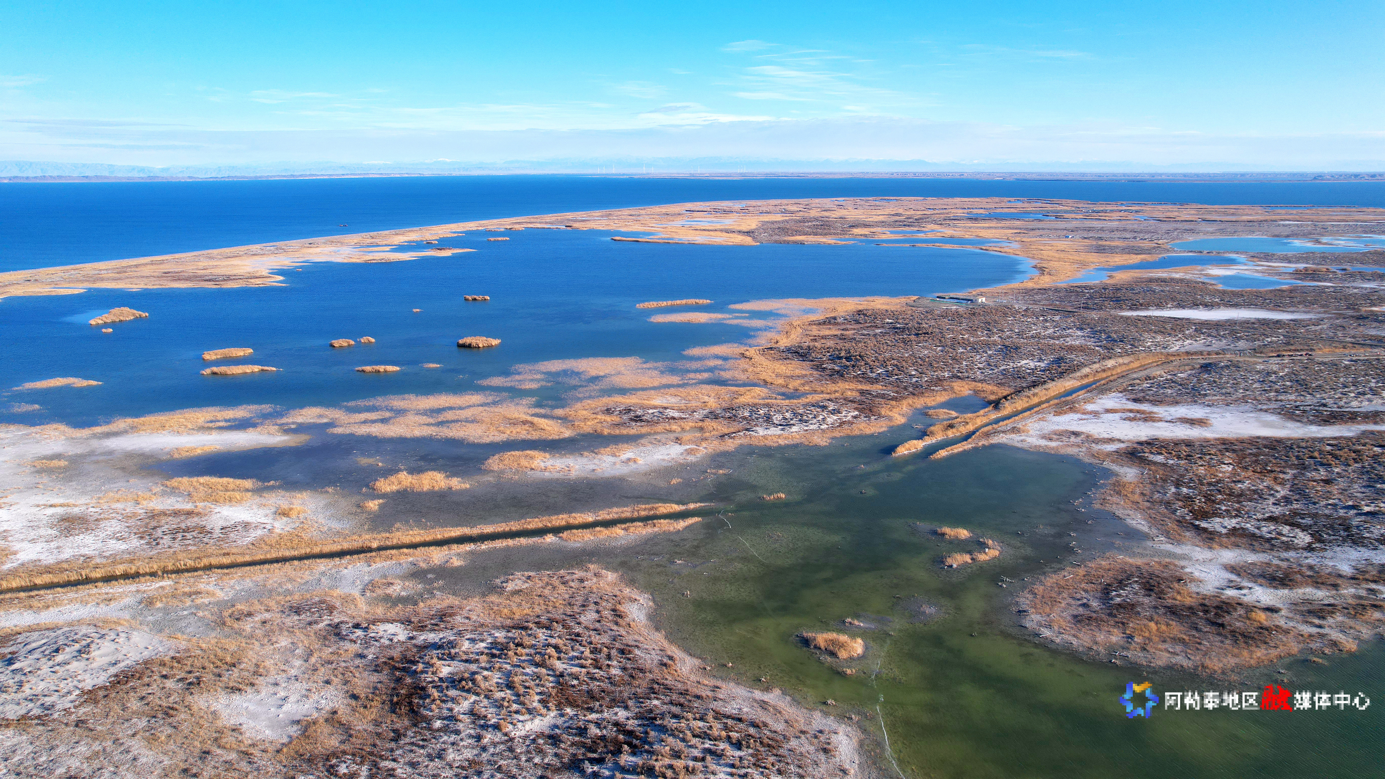 初冬时节,福海县乌伦古湖国家湿地公园静谧恬淡、美景如画。