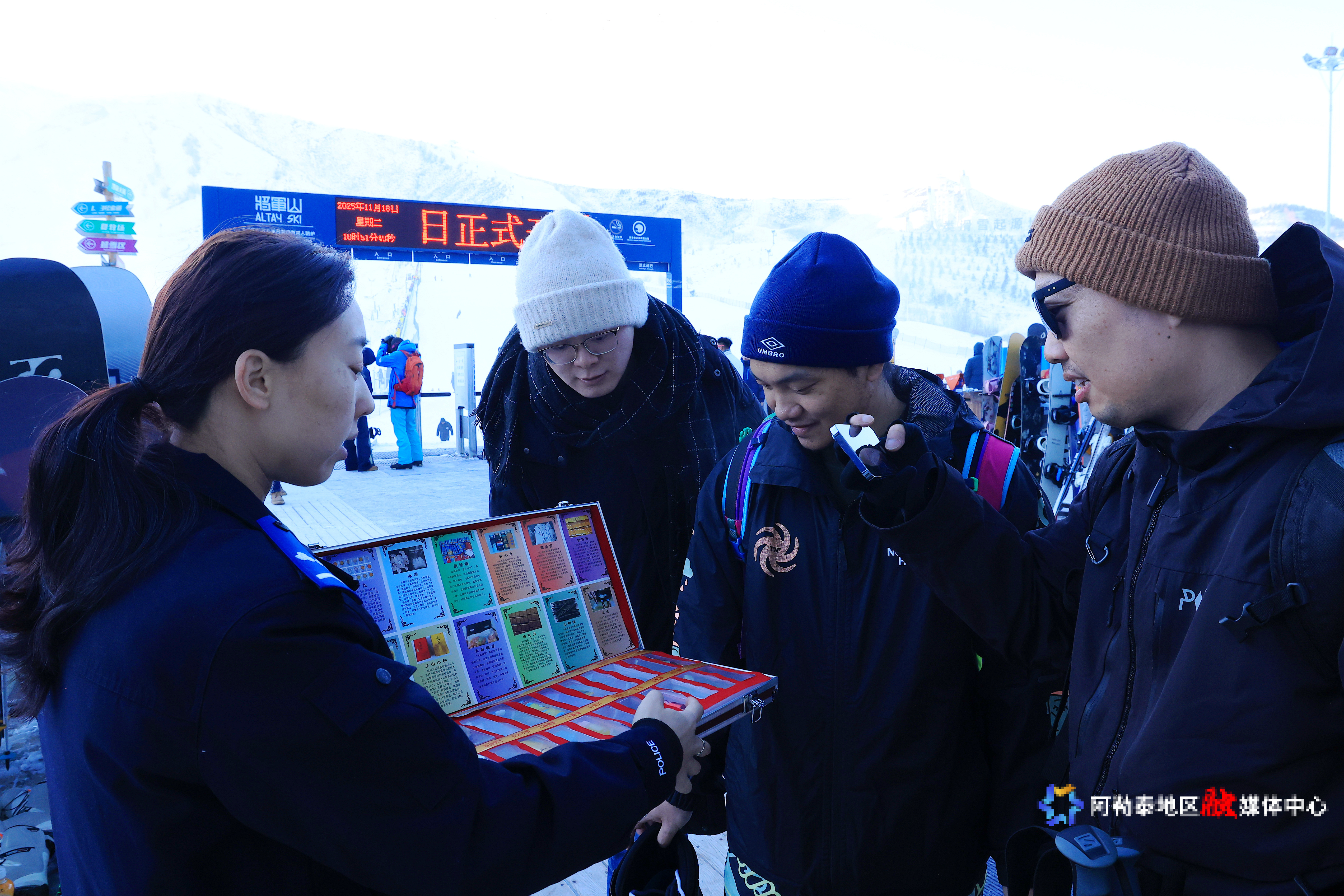 阿勒泰新闻网-阿勒泰地区融媒体中心(记者 阿尔达克·拜斯汗 摄)11月18日,阿勒泰将军山国际滑雪度假区开板。为进一步增强雪友识毒、防毒、拒毒意识,营造抵制毒品、参与禁毒的良好氛围,当日,地区公安局禁毒大队民警走进雪场,向雪友们普及禁毒知识、传播禁毒理念,呼吁广大雪友珍爱生命、远离毒品,争做防毒拒毒的践行者和宣传者。