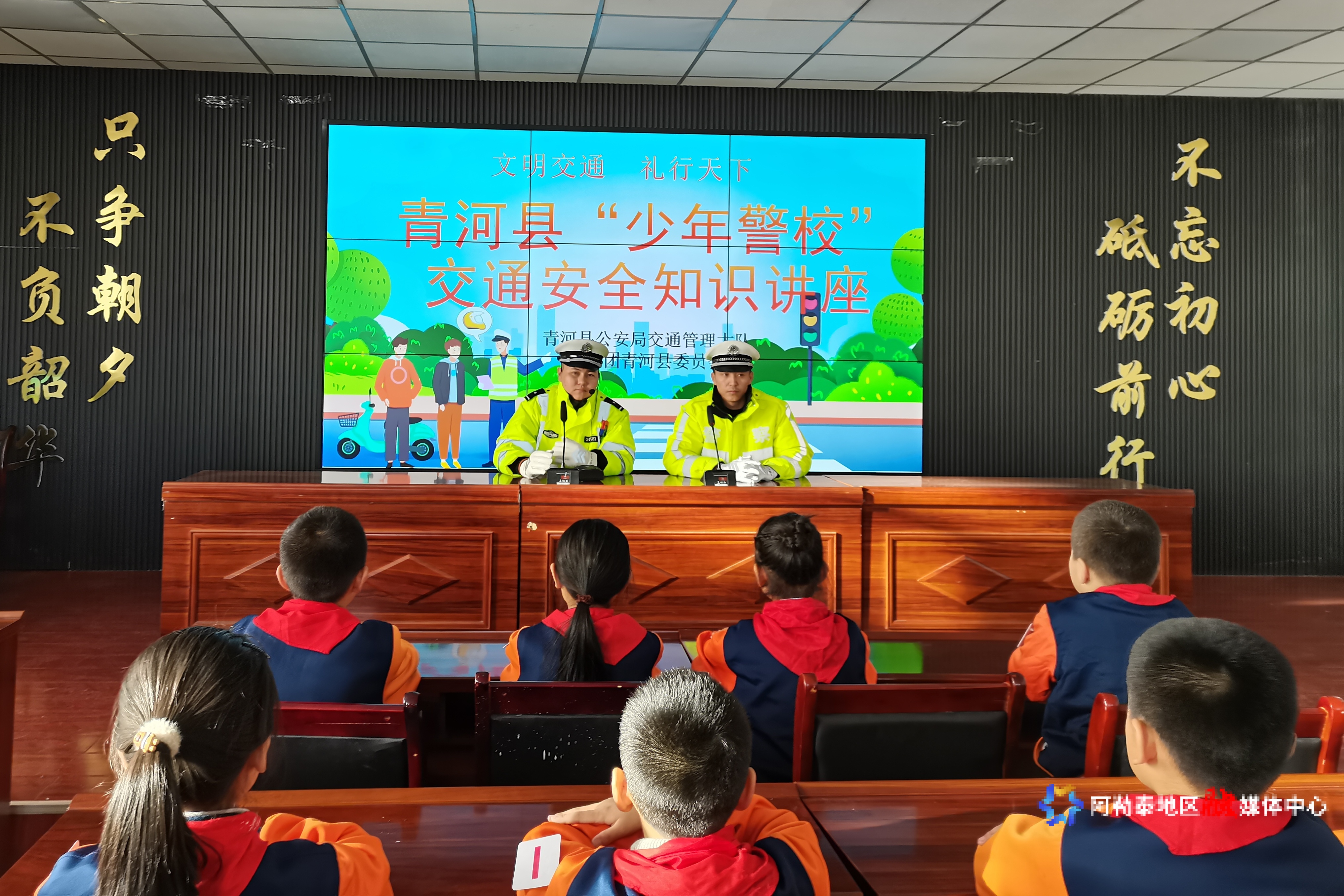 青河县公安局民警为师生们开展交通安全主题教育课。