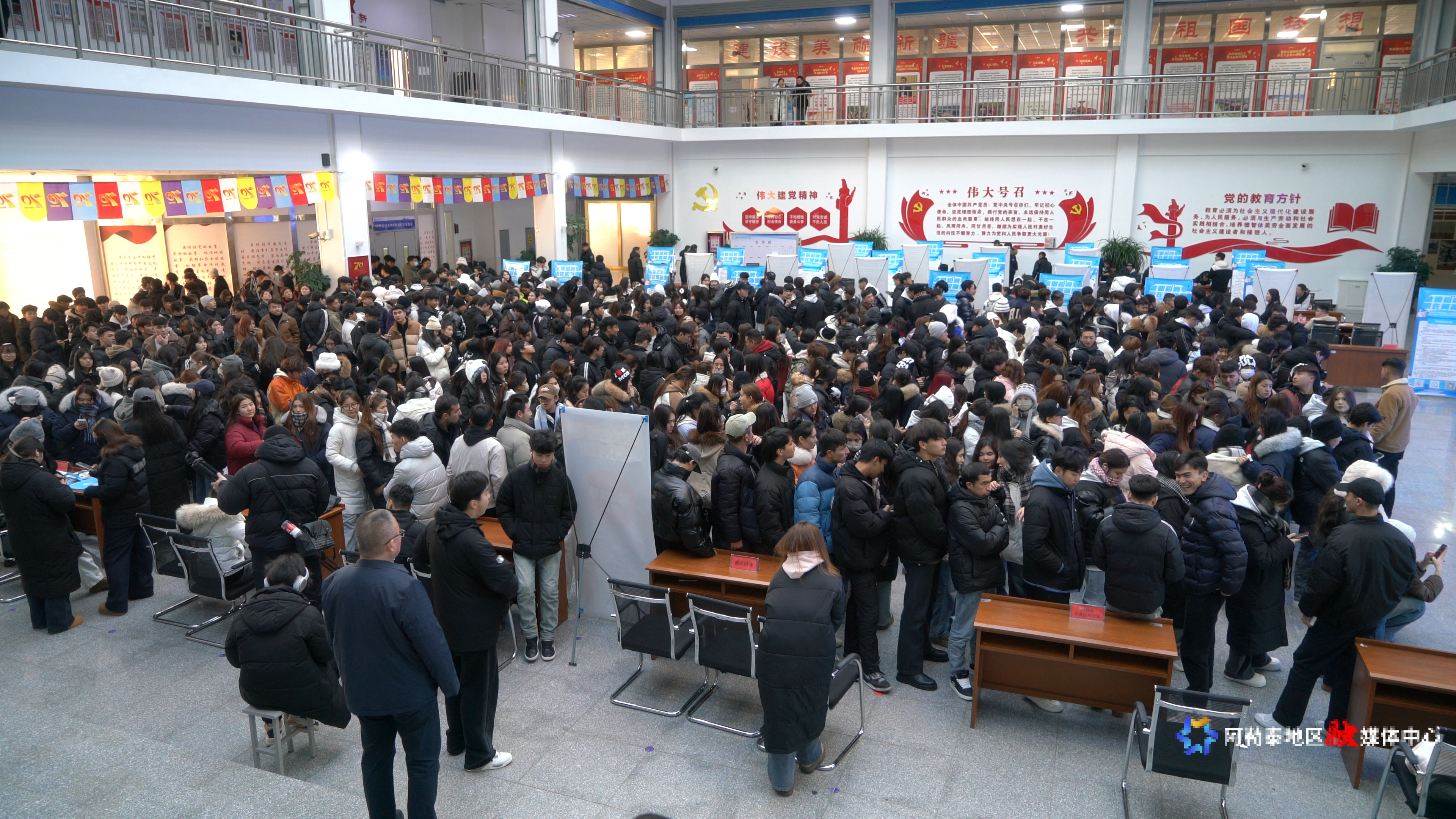 12月12日,2025年阿勒泰地区人力资源市场高校毕业生就业服务进校园活动现场人头攒动。