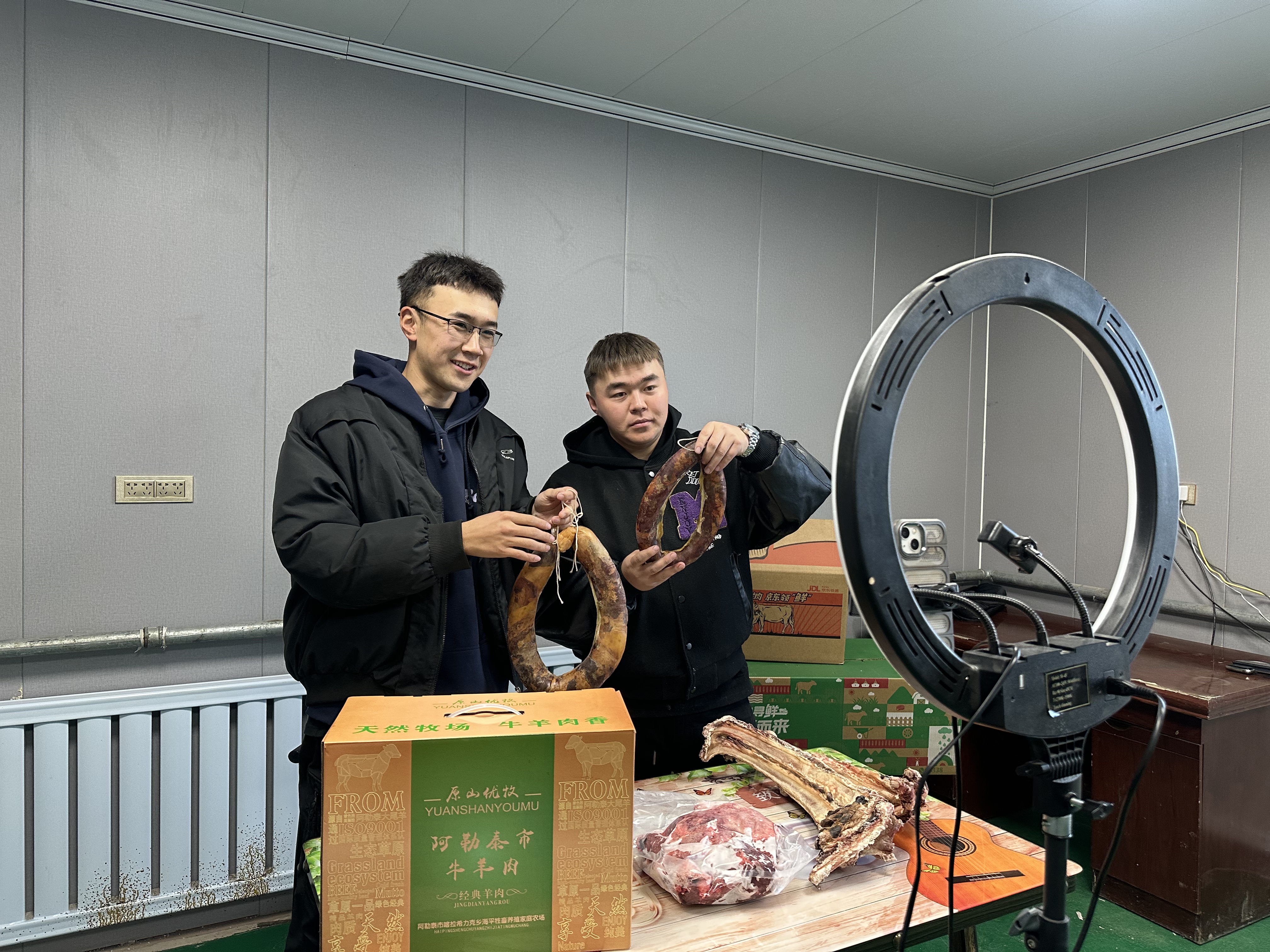 “快来看看嘞!正宗雪都小骆驼精品骆驼肉礼盒,肉质鲜嫩、真空包装,当年货送亲戚朋友再合适不过!”2月5日,切木尔切克镇“日照金山”服务站内,专干周宇热情地向来往群众介绍特色年货。他身前的货架上,骆驼肉礼盒、奶疙瘩、奶皮子等本土特产整齐码放,包装精美又大气。作为大学生西部计划志愿者,周宇不仅忙着接待顾客,还特意为其他西部计划志愿者推出大幅优惠,贴心的服务让订单量一路上涨。