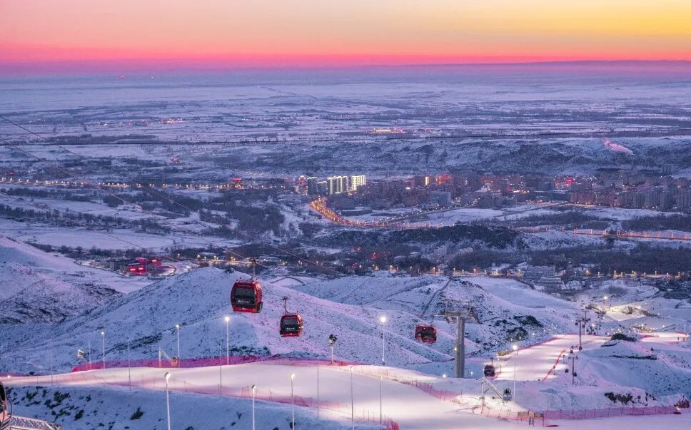 与远处阿勒泰市区的璀璨灯火交相辉映