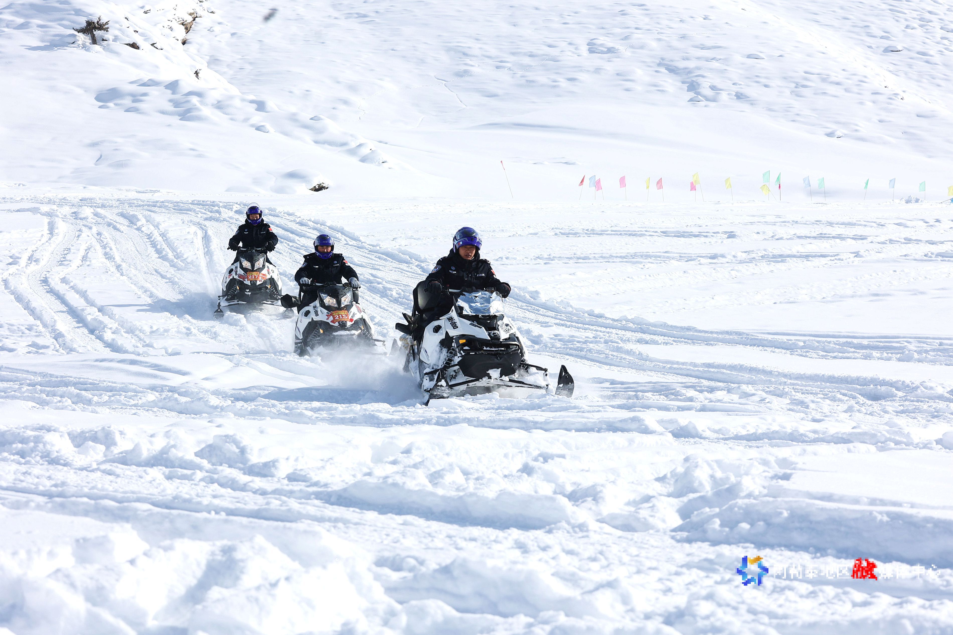 民警在富蕴县可可托海国际滑雪场开展冬季冰雪旅游护航及周边区域巡逻。通讯员 李晋摄