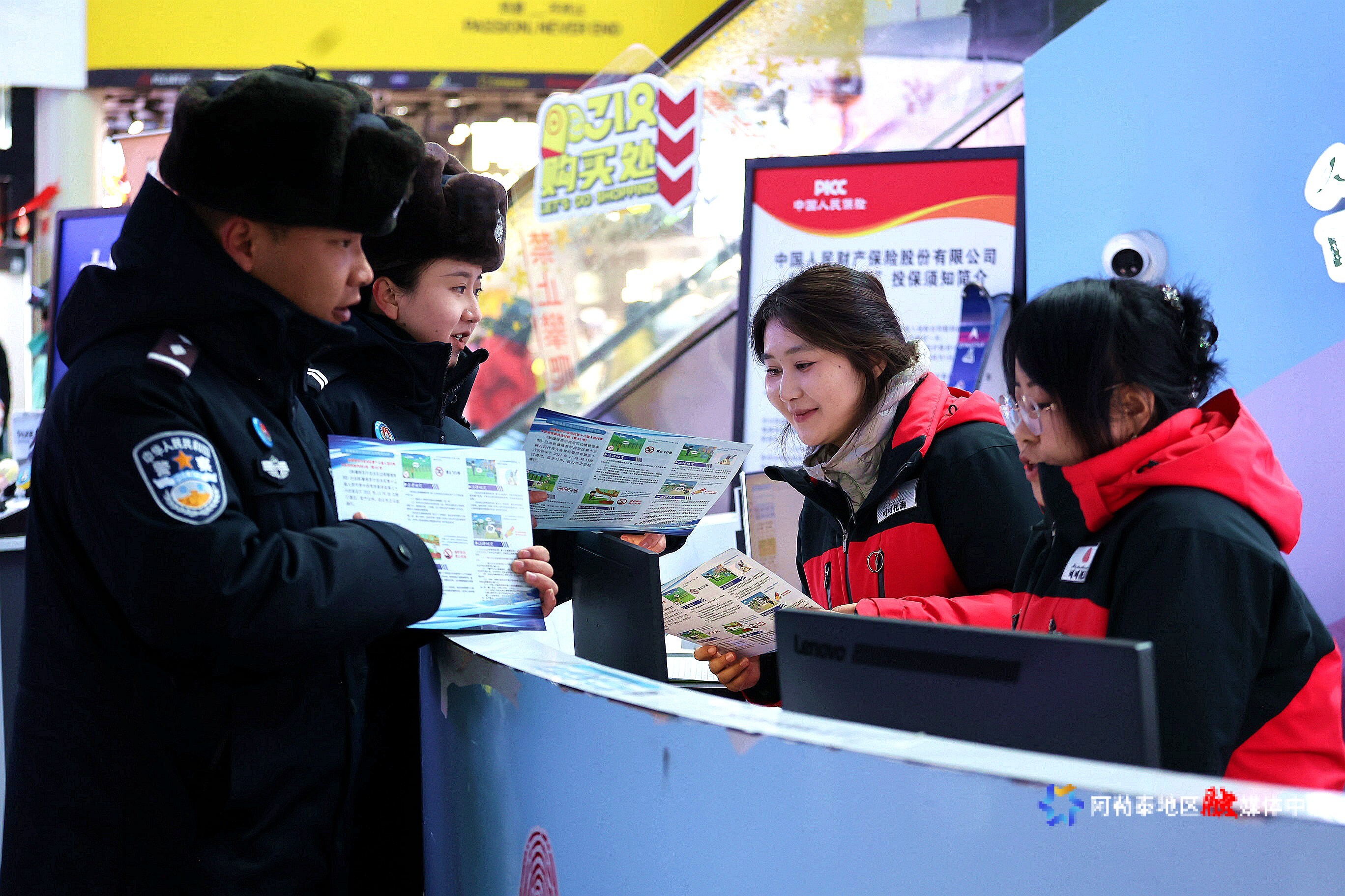 民警在富蕴县可可托海国际滑雪场对游客进行安全提醒和法律法规宣传。通讯员 李晋摄