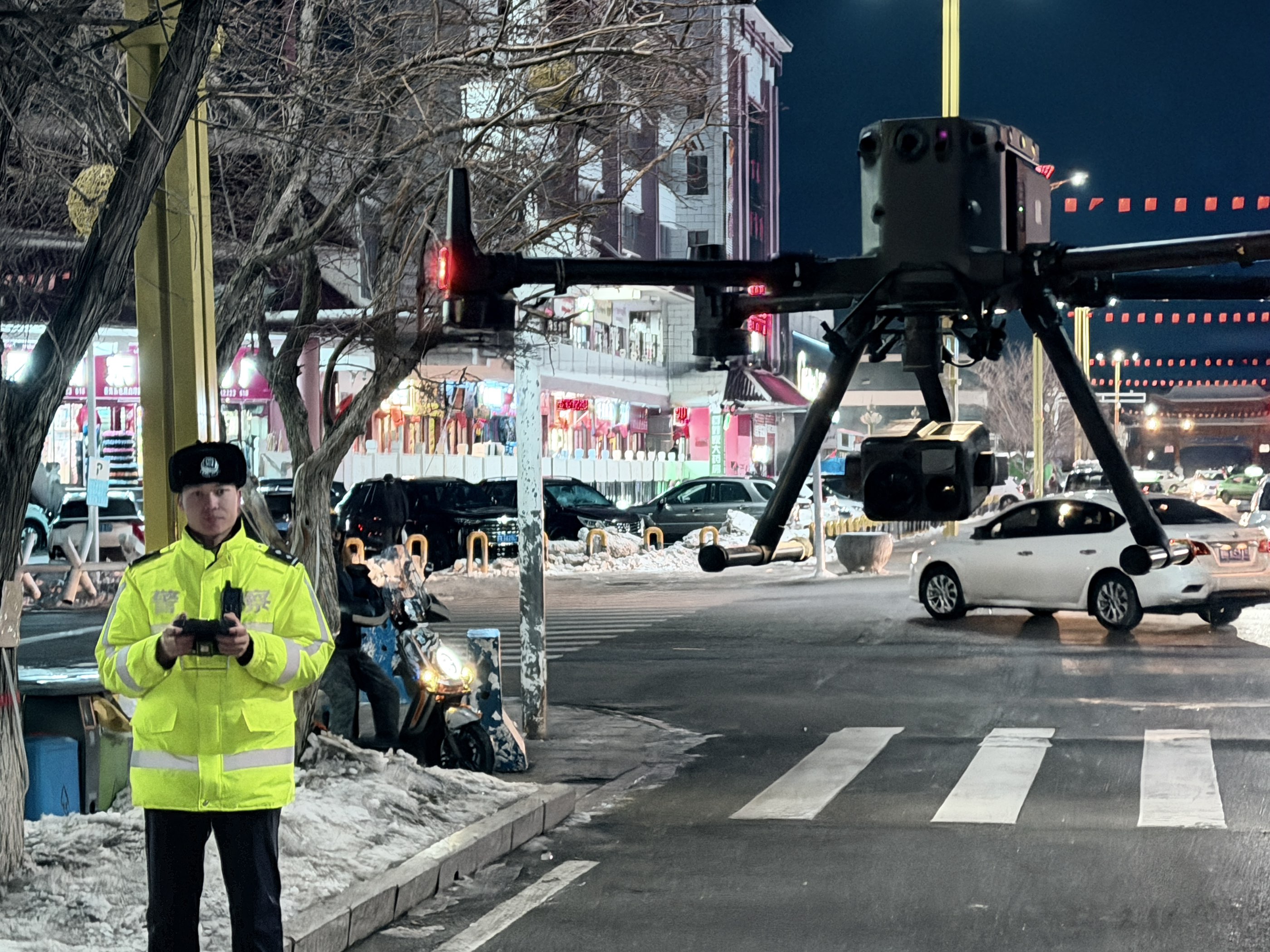 吉木乃县公安局交通管理大队民警无人机执法小组定点值守,操控设备升空开展全域巡查,对违停、闯红灯、逆行、不礼让行人、不戴安全头盔等违法行为进行精准抓拍取证。