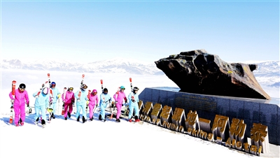 千里画廊,若天公展卷;万年雪疆,似玉砌瑶台。墩德沟岩绘之奇^⑦,上古遗韵;将军山雪场之胜,亚欧无俦;青河狼山,苍狼故道;可可托海,海兰盈眸;吉克普林,林海雪原。李娟名文《九篇雪》,已成金山绝唱;雪道纵横二百条,实乃大荒造化;霜华晕染千里山,俨然水墨画卷。