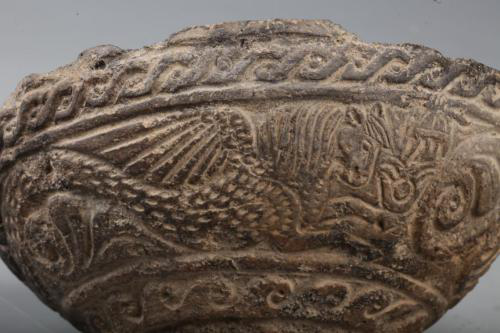 唐代马首龙身鹰翅纹灰陶范。阿克苏地区博物馆供图