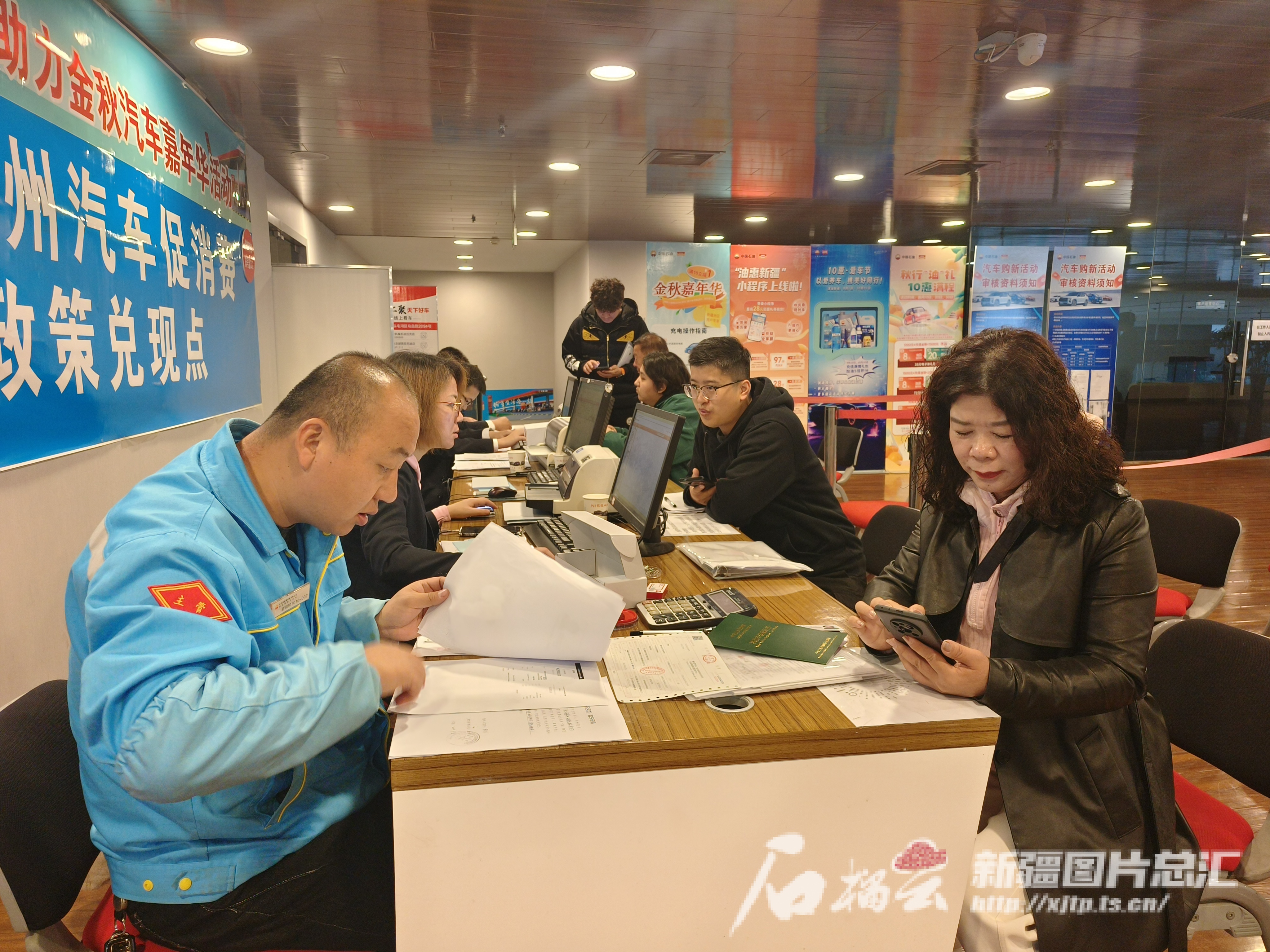 10月24日,在昌吉市庞大汽车城,昌吉市民正在申领油卡,为了促进汽车以旧换新,昌吉回族自治州在国家补贴和自治区补贴的基础上,增加了州级补贴。石榴云/新疆日报记者 黑宏伟 摄