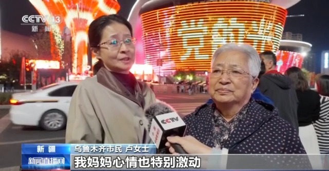 乌鲁木齐市民 卢女士:今天也是看了新闻,我妈妈心情也特别激动,在家就一直给我们说,哪好都不如我们新疆好是吧,所以今天我们就有时间出来看一下。
