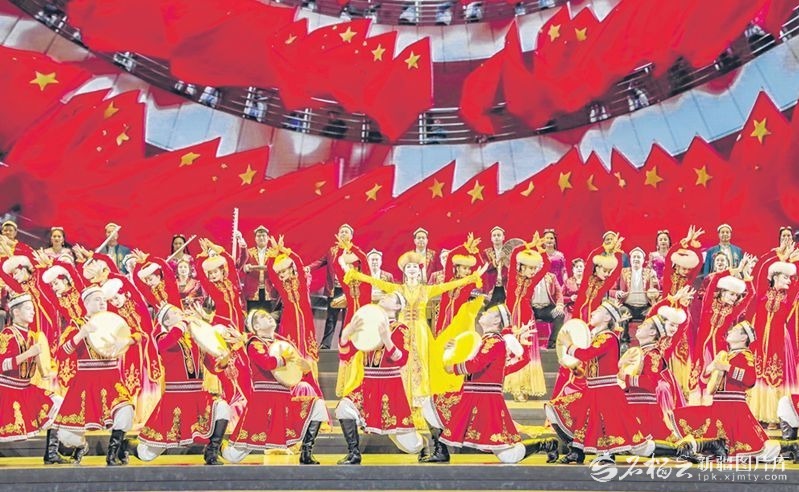 从1955年10月1日各族群众欢庆自治区成立,到库尔班·吐鲁木讲述新生活的喜悦;从青年扎根边疆开荒拓土,到改革开放城乡焕发活力;再到如今天山南北社区乡村里,各族群众亲如一家、互助共融……一个个历史片段在舞台上鲜活呈现。