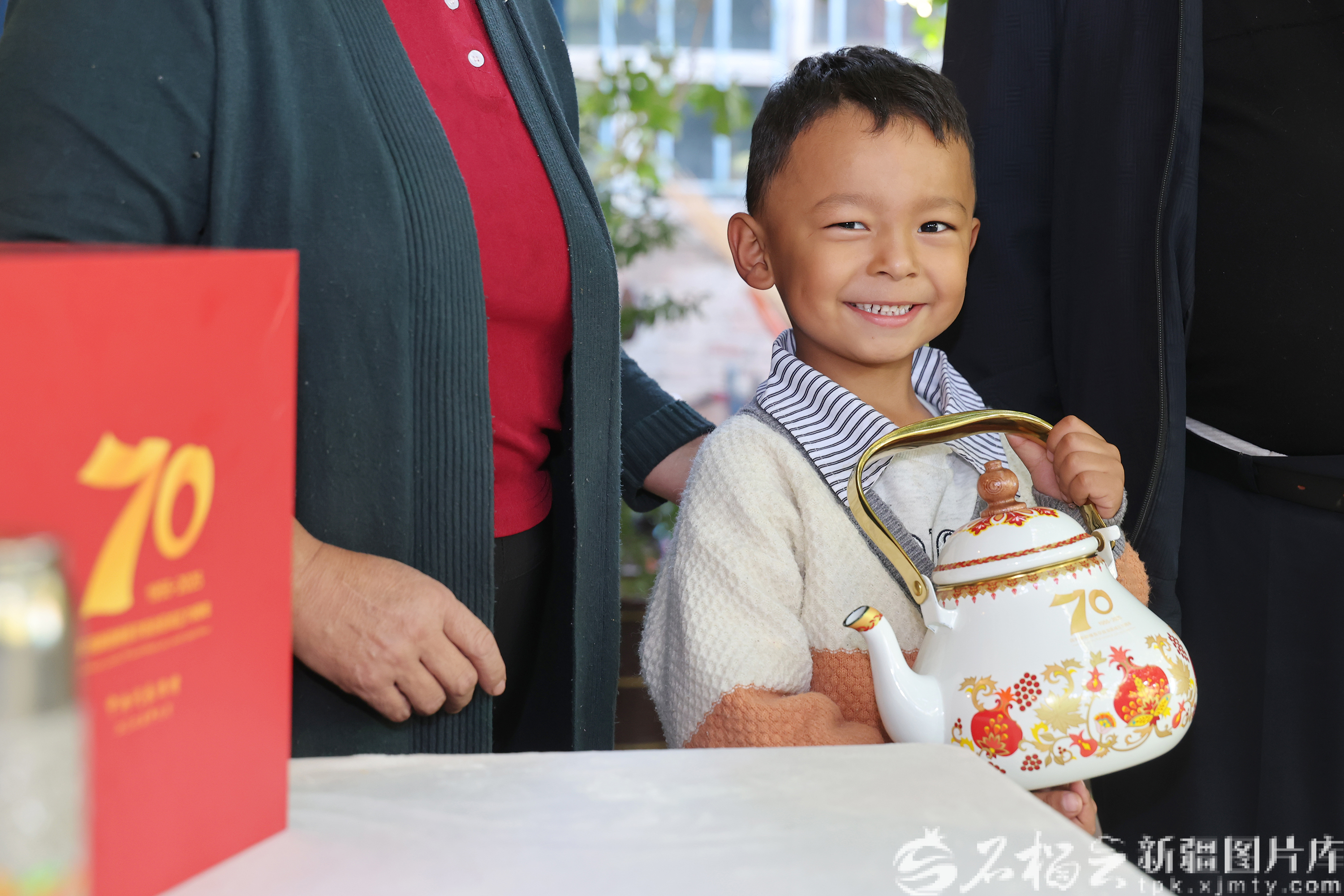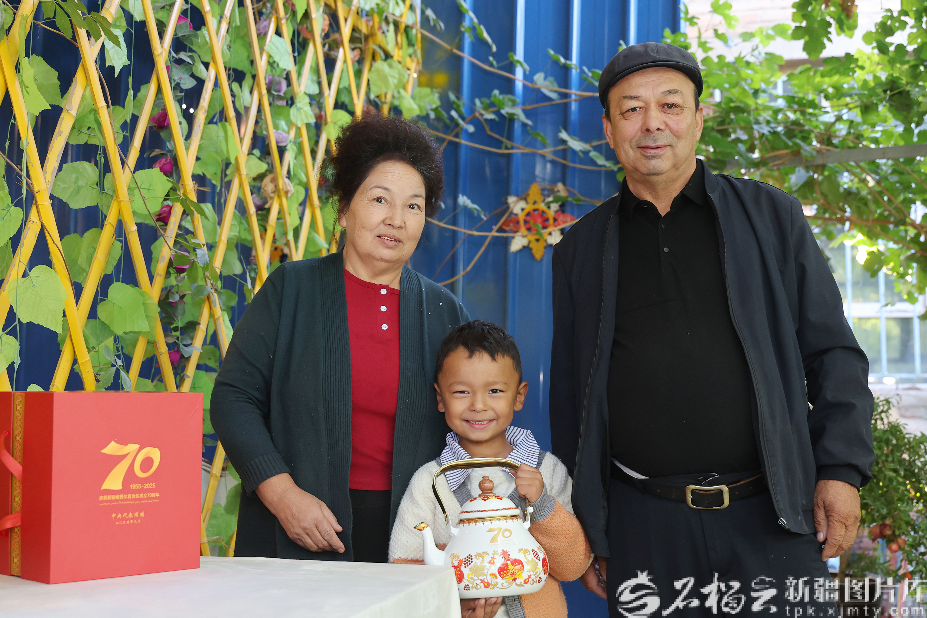 吾买尔说,在自治区成立70周年的喜庆日子里,中央代表团不远万里看望基层群众,党中央这份情谊,我们不会忘记。说着,他叫来老伴和孙子,在纪念品旁留下一张合影。画面里,小孙子抱着茶壶,笑得格外灿烂。