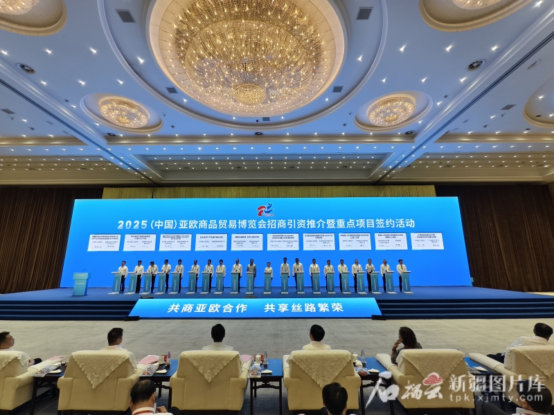 6月27日,2025(中国)亚欧商品贸易博览会招商引资推介暨重点项目签约活动在新疆国际会展中心举行。(资料图)
