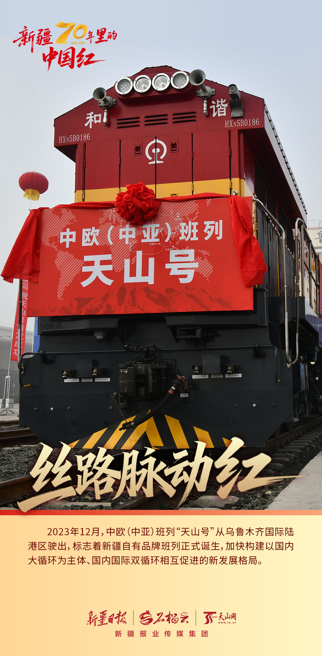 70年昂扬奋进,从丰收盛景到丝路虹光,从科技燎原到文化共融,新疆以跨越之姿绘就的盛世长卷上,每一寸都浸染着“中国红”的炽热图腾。