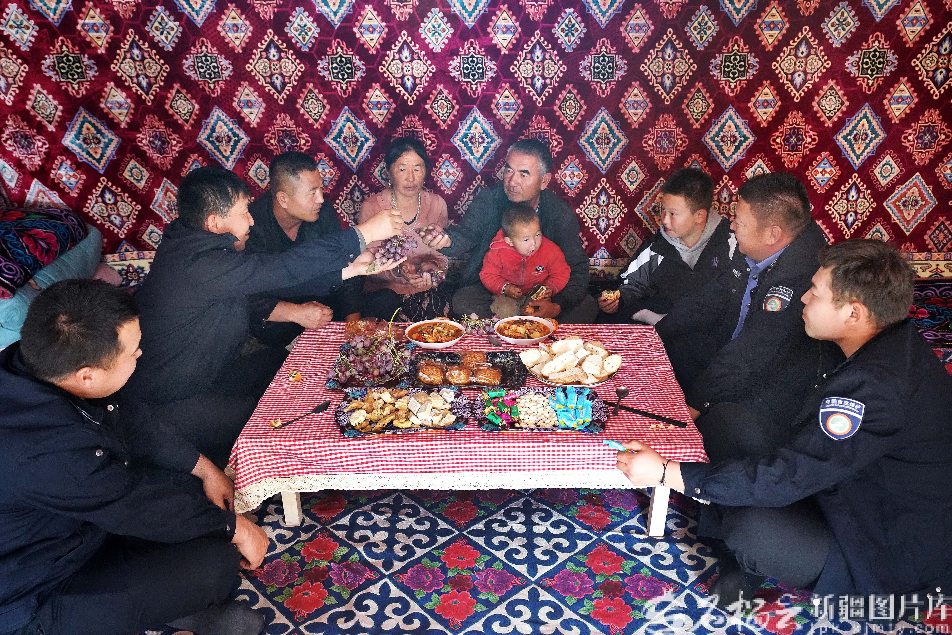 “我们都是一家人,牧民家的事就是我们的事。”叶尔森说,他和同事负责巡护的辖区面积大、任务重,毛吾江等义务监管员就像他们的眼睛和耳朵,为保护区的生态管护工作提供了很大帮助,“我们经常一起巡护、一起救助野生动物,今天,能以这样的方式欢度国庆中秋,像在自己家一样温暖。”