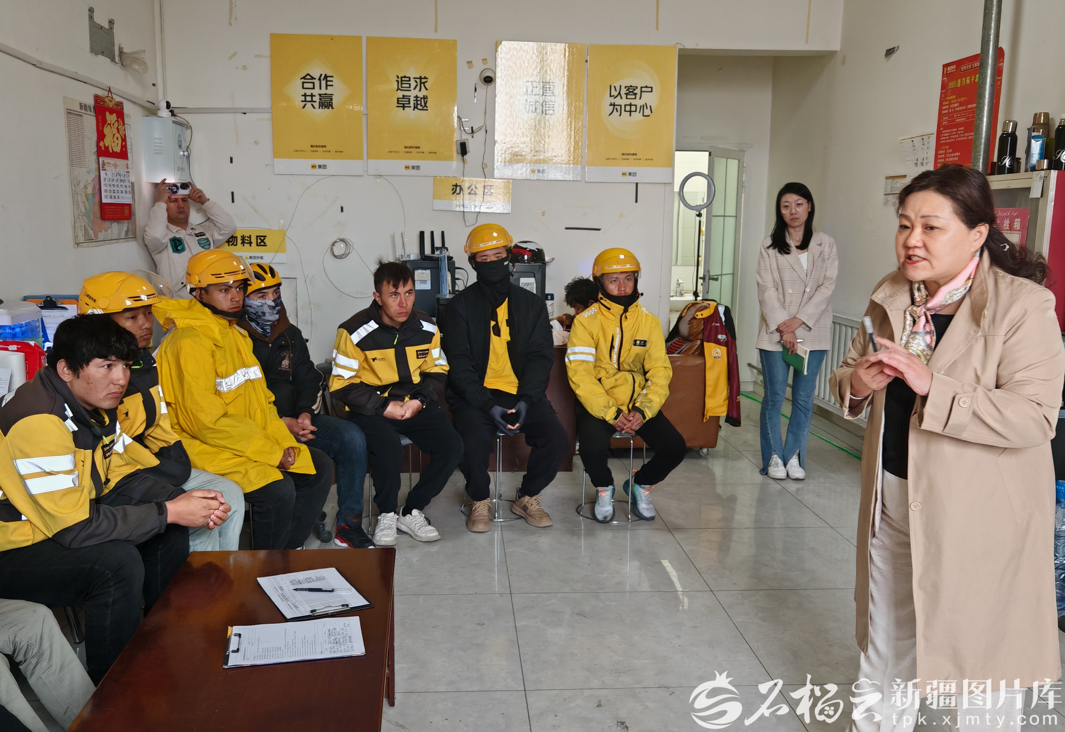 克拉玛依开放大学骑手学院开设流动教学点,将国家通用语言文字课程送到外卖站点。克拉玛依开放大学骑手学院供图