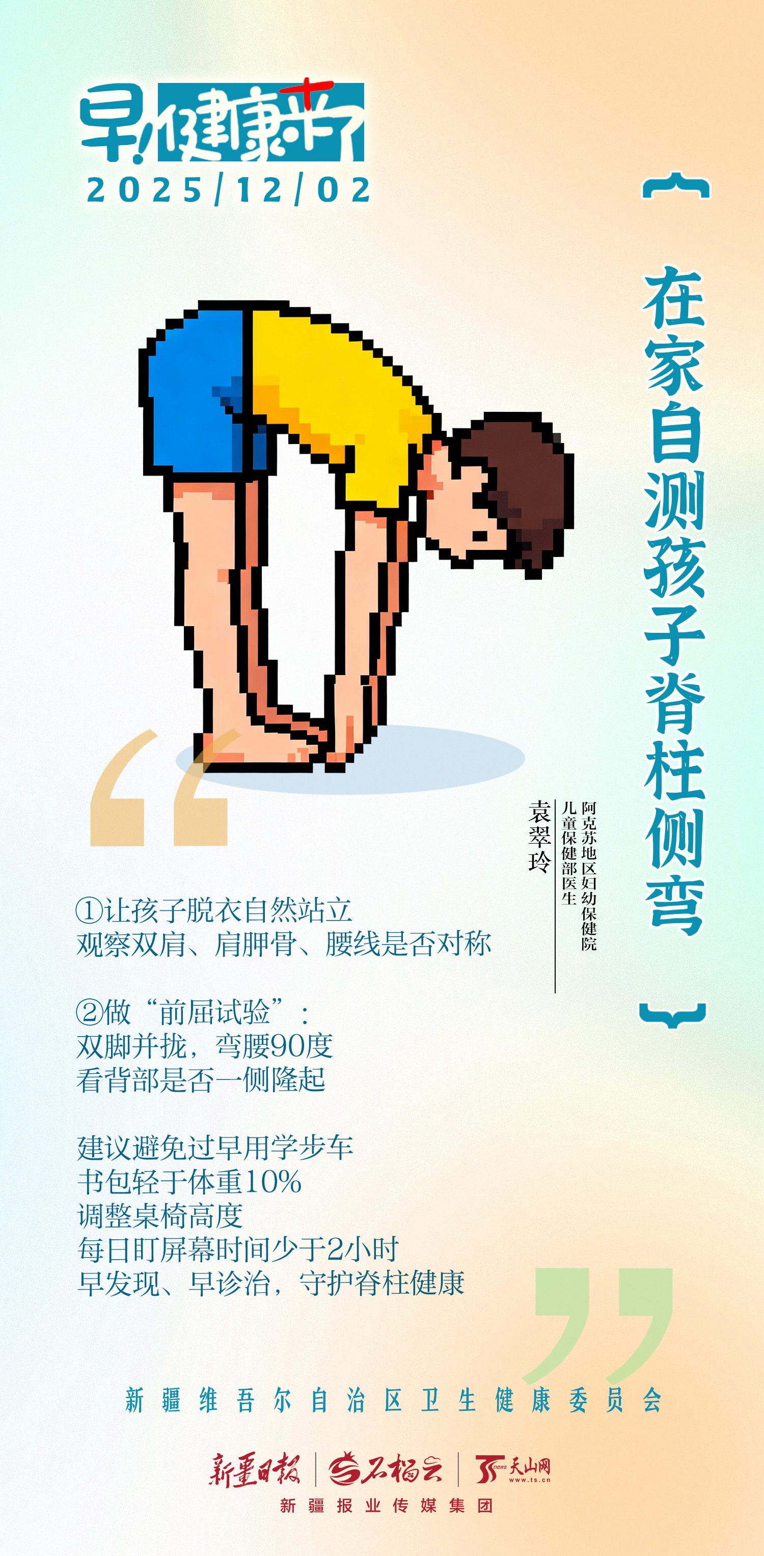 早!健康来了丨在家自测孩子脊柱侧弯