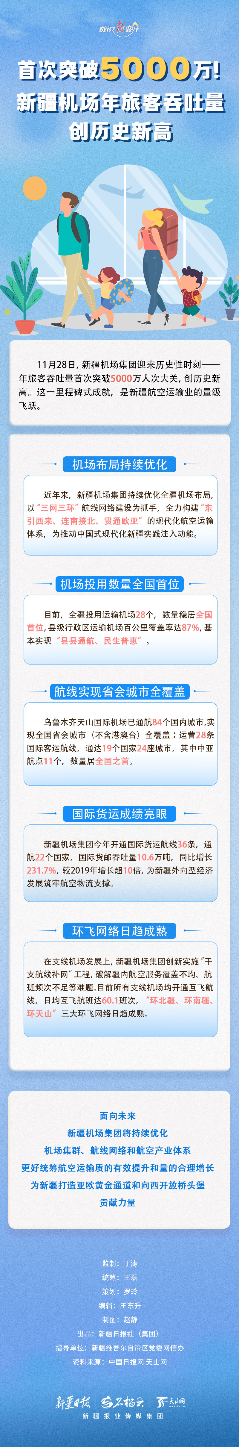 11月28日,新疆机场年旅客吞吐量首次突破5000万人次大关,创历史新高。这一里程碑式成就是如何取得的?新疆机场集团做了哪些努力?今天的《数说“新”变化》为你解读。