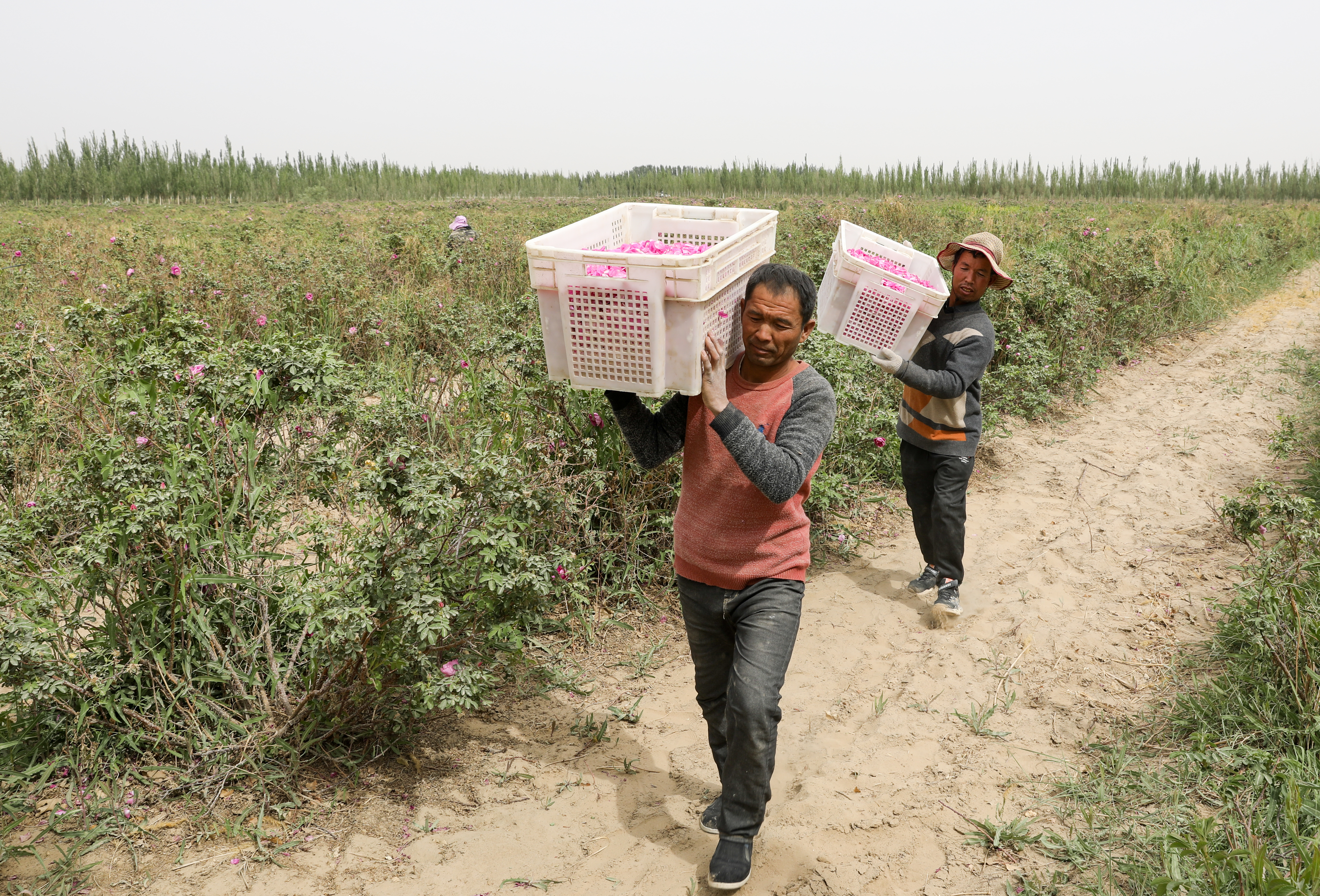 一筐筐的玫瑰花瓣送到结算点。许晓龙 摄