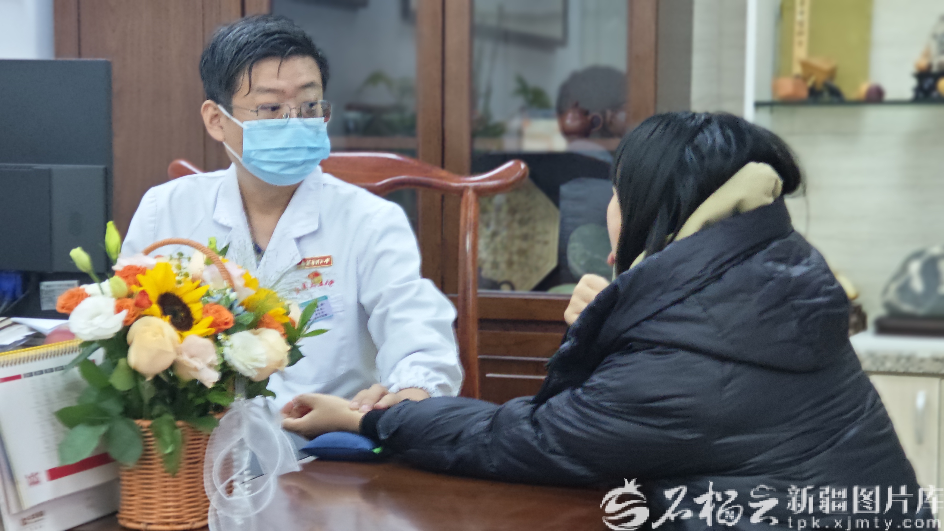 11月27日,新疆医科大学第五附属医院中医科副主任、主任医师王家平为患者诊脉。石榴云/新疆日报记者 苏璐萍摄