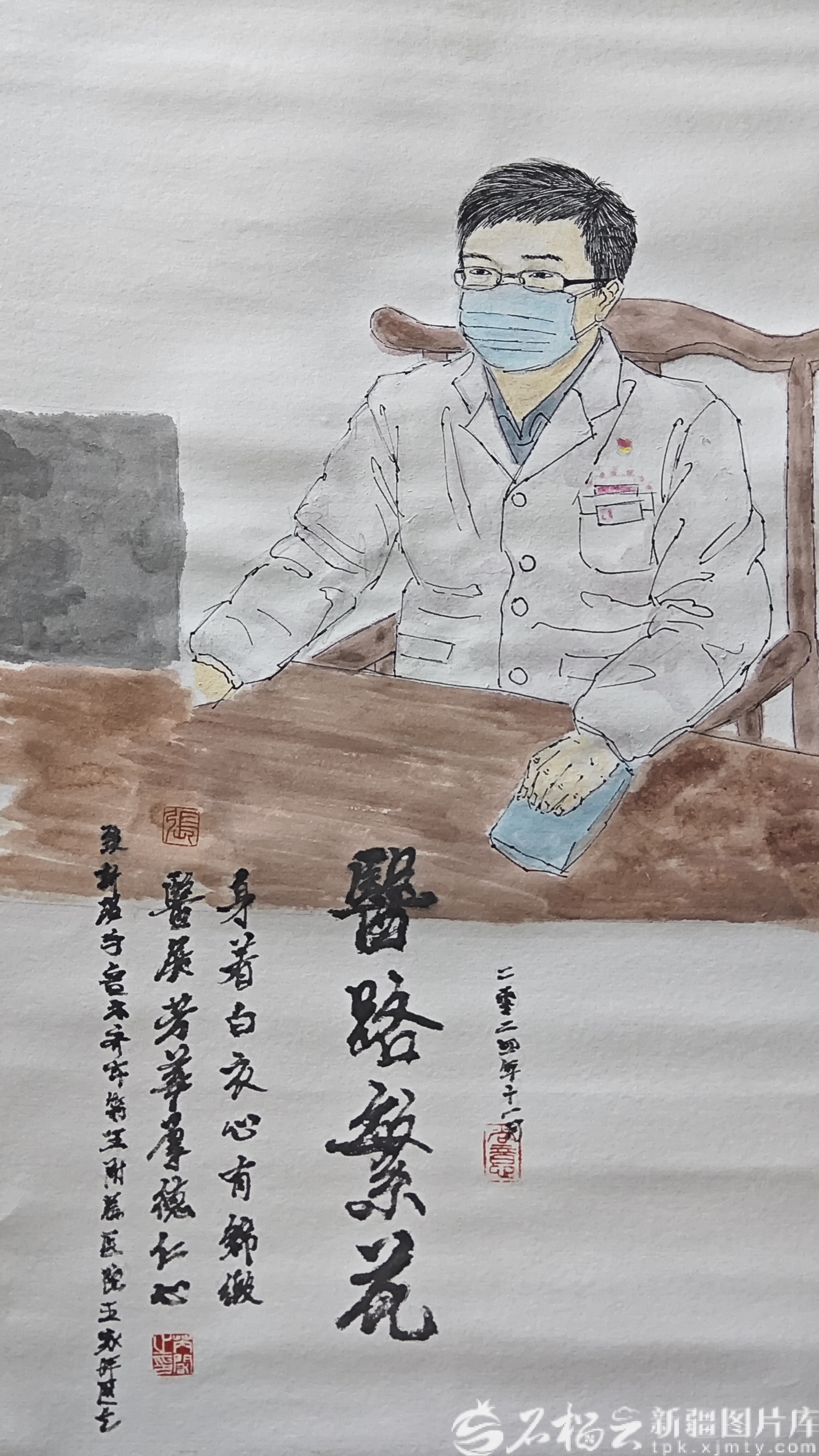 新疆医科大学第五附属医院中医科副主任、主任医师王家平的诊室里,挂着患者赠予的手绘画。石榴云/新疆日报记者 苏璐萍摄