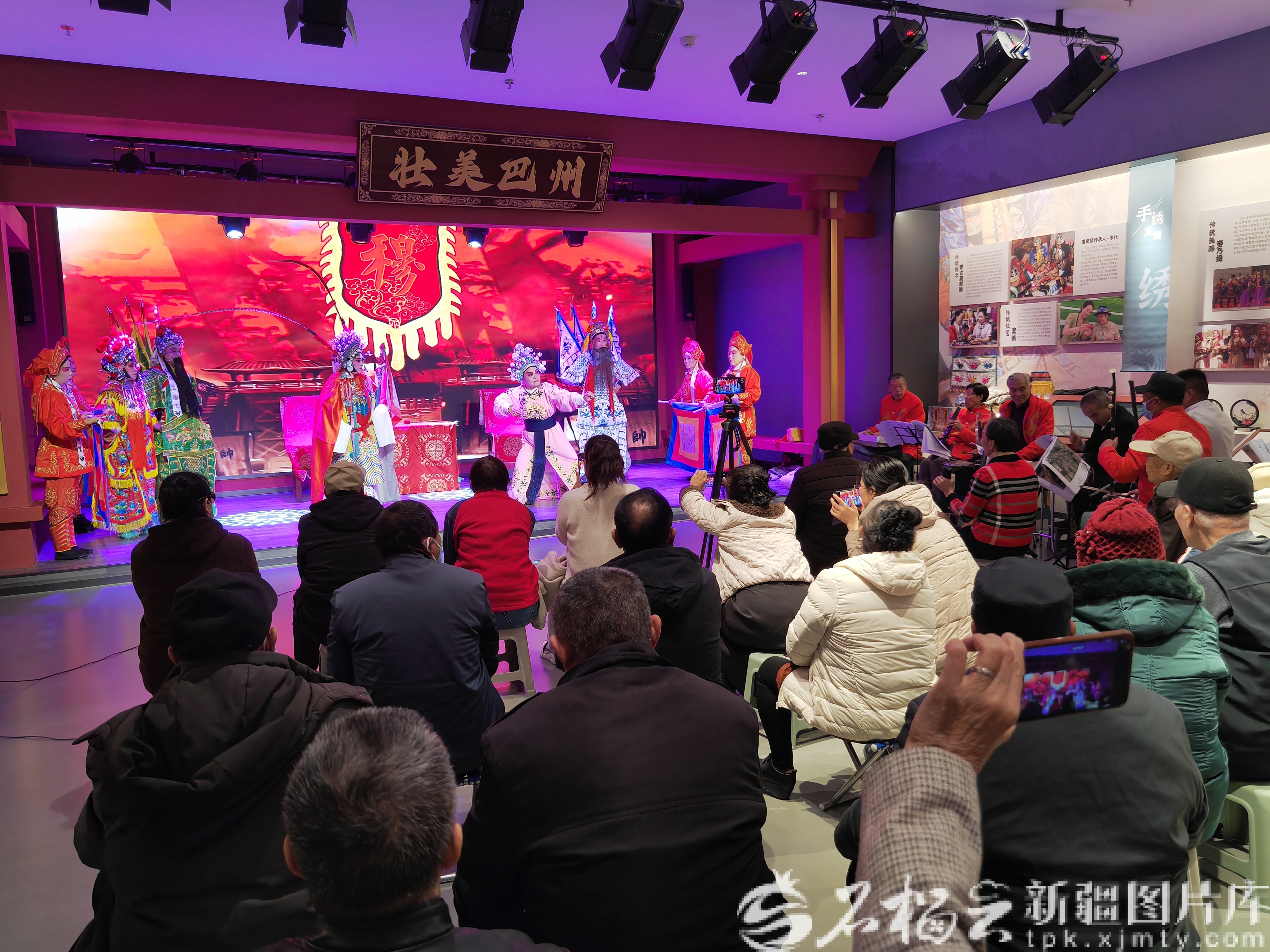 11月30日,刚推开巴州铸牢中华民族共同体意识主题展馆的门,一阵婉转的戏曲调子就飘了过来。舞台上正演绎豫剧《穆桂英挂帅》,台下叫好声一阵接一阵。