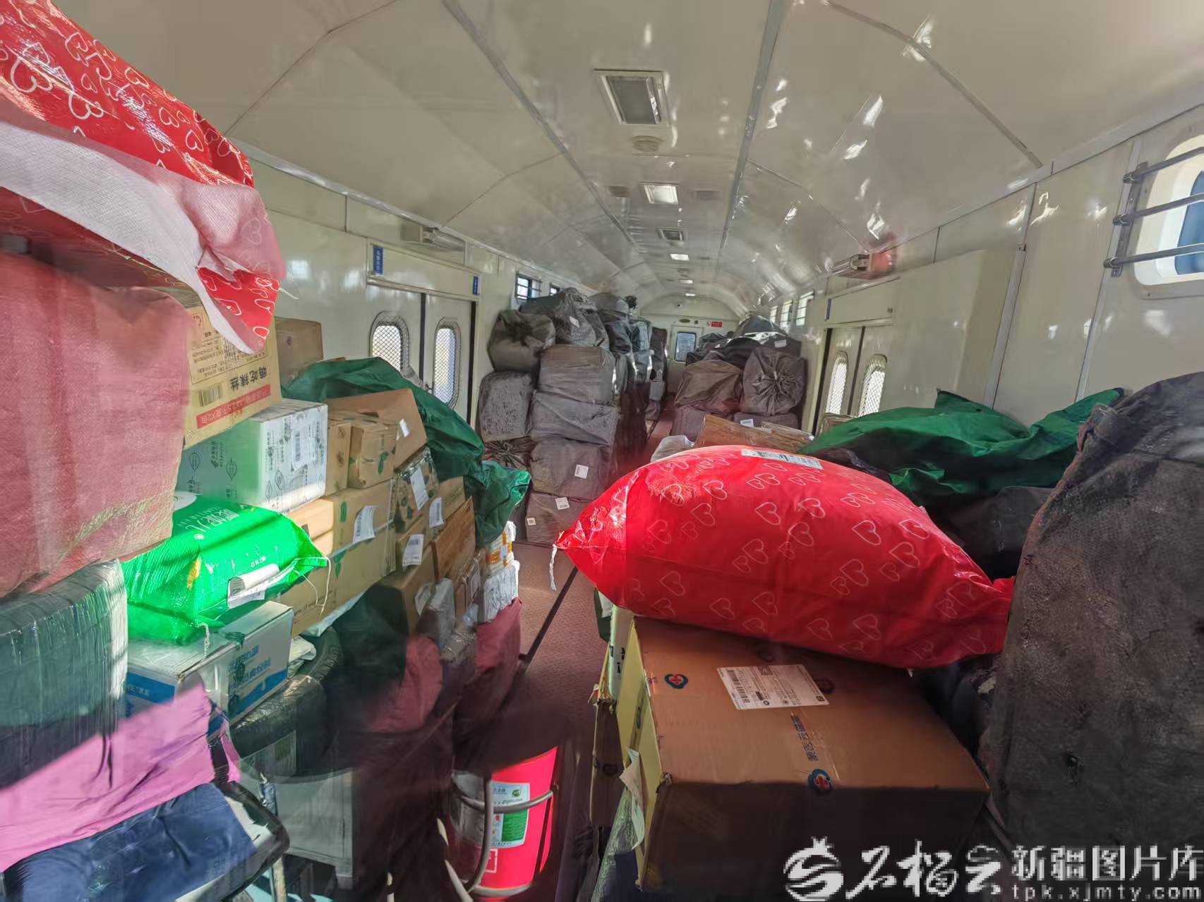 12月2日,呼和浩特发往乌鲁木齐火车上,一列车厢装满邮件。郑新伟供图
