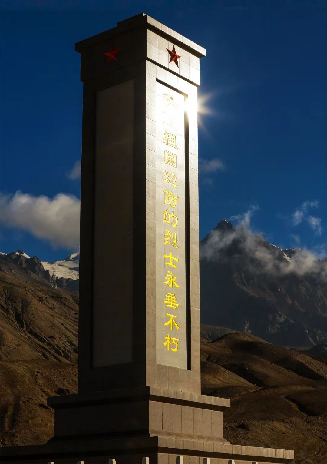 在康西瓦,每一座矗立的丰碑都镌刻着不朽的信仰,这份精神与守护家国的使命,跨越时空、薪火相传,深深烙印在每一位军人的肩头。在陵园对面的群山上,官兵们用石块堆砌的“弘扬喀喇昆仑精神”8个大字,时刻鼓舞着每一个路过此地的人。
