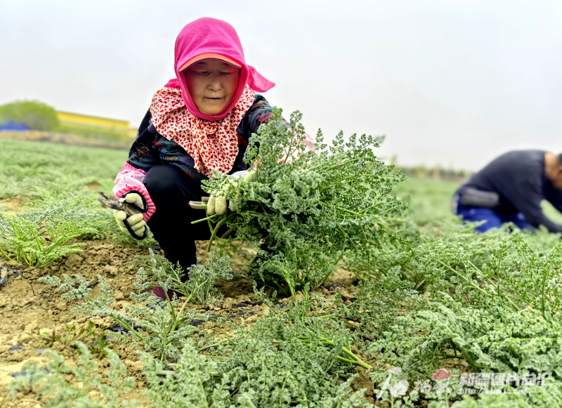在玛纳斯美农阿魏生态科技有限公司阿魏草种植产业园,工人忙着采收阿魏草。王薇 摄