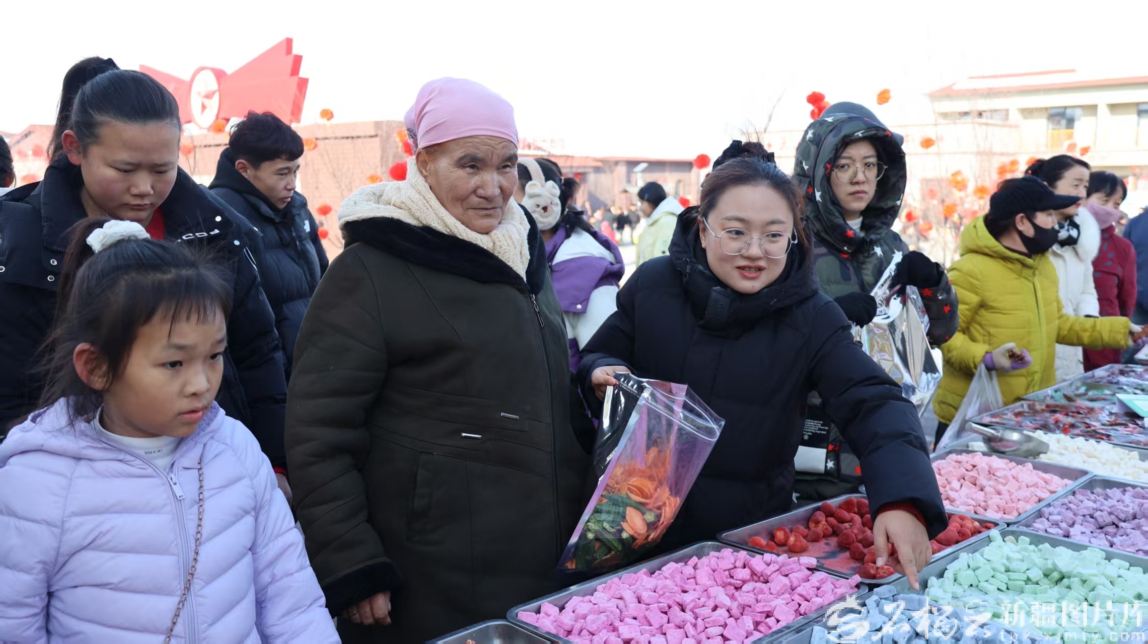 2026年1月1日,新年第一天,吉木萨尔县第八届北庭年货会热闹非凡,锣鼓喧天、人头攒动,火红的灯笼将市场装点得喜气洋洋。吉木萨尔县新地乡干部王禹燕带着结对亲戚卡斯依热·祖卡甫力穿梭在琳琅满目的摊位间,观看文艺演出、品尝特色美食、选购年货,干货炒货的香气、新鲜果蔬的生机,共同勾勒出充满烟火气的年俗画卷。