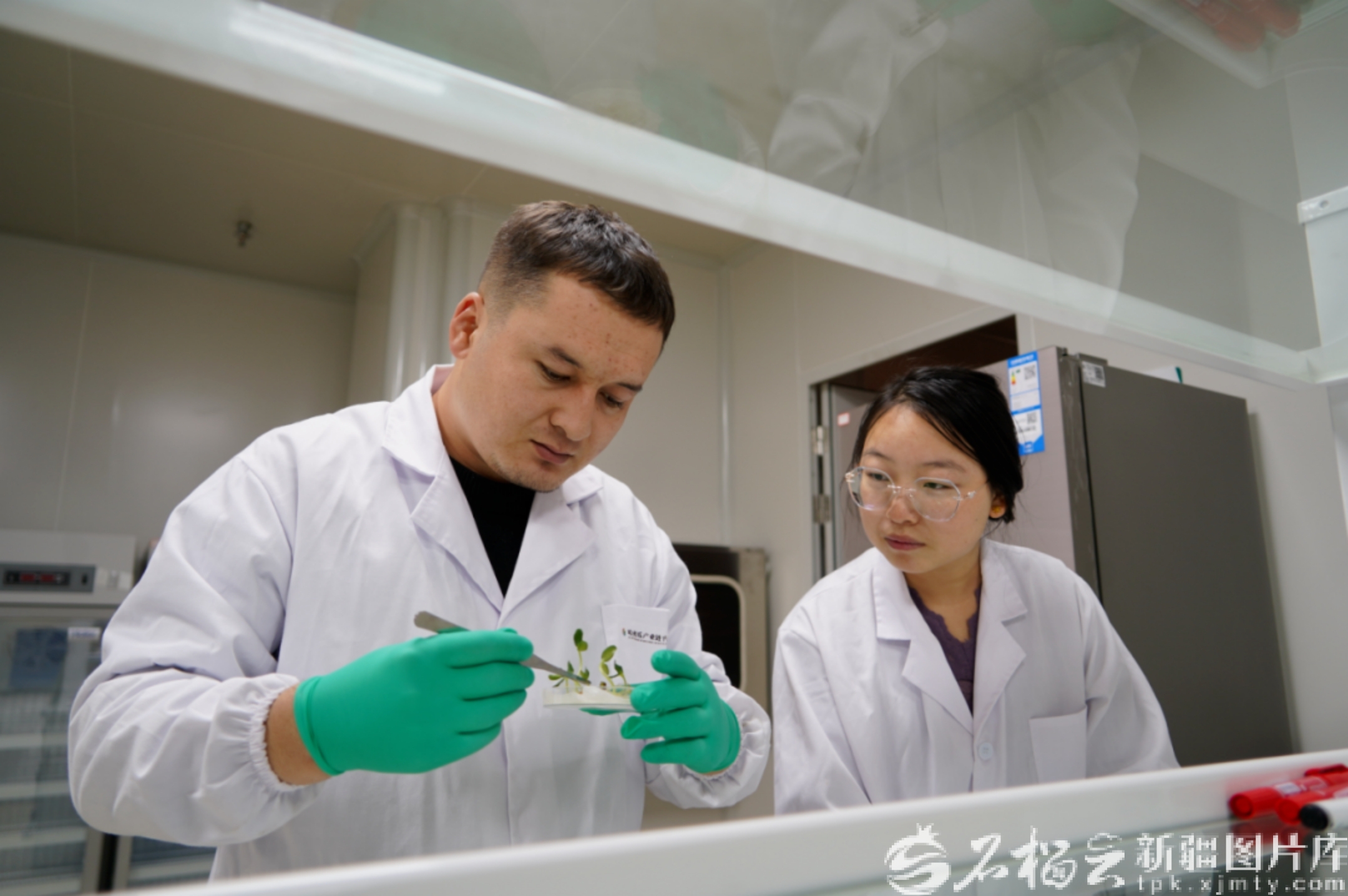 哈密瓜鲜果产业链平台服务中心种质研发中心工作人员在进行哈密瓜种子活性检测(资料图)。杨宏建摄