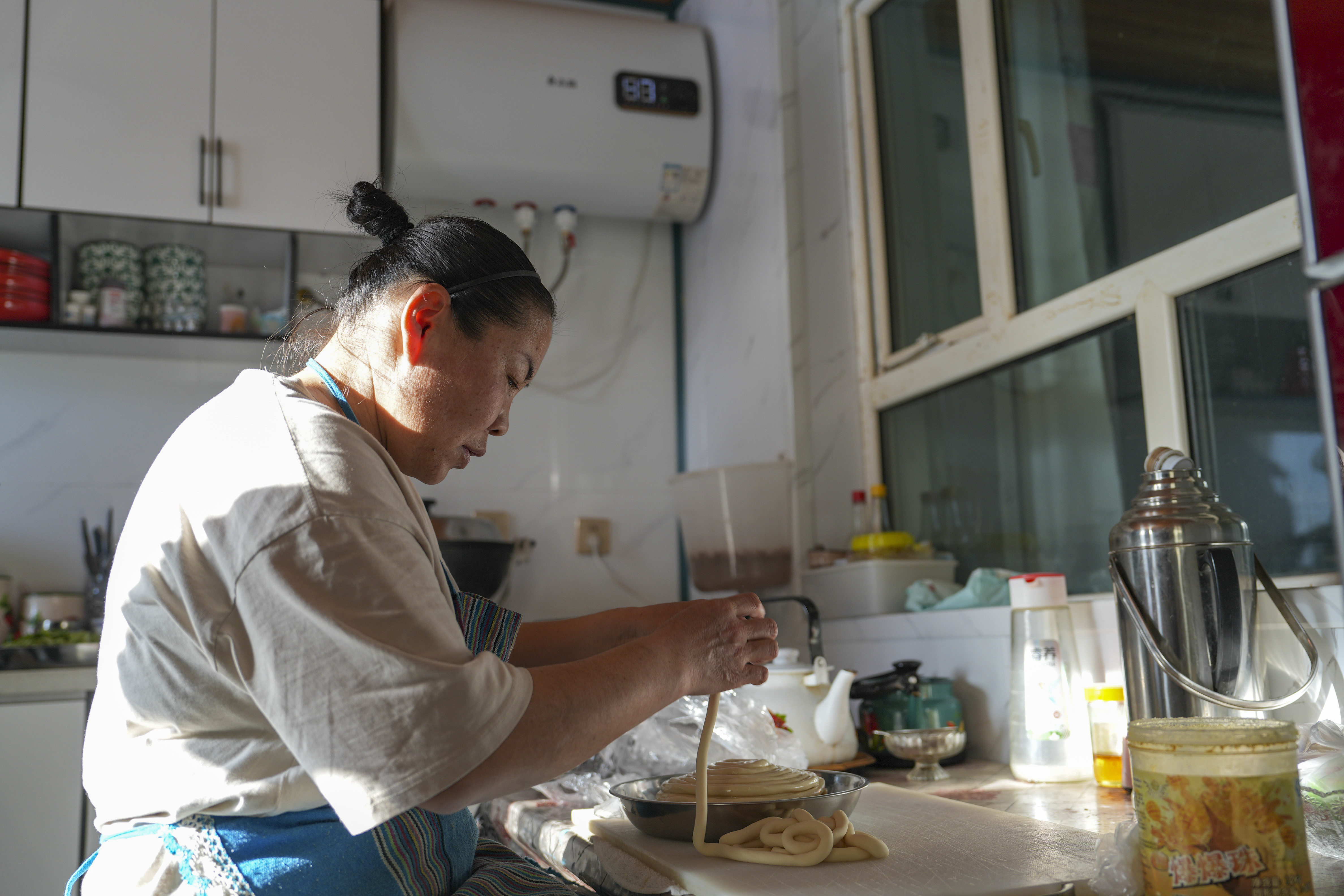 1月16日,吐尔洪乡的村民在家中制作面食。新华社记者 胡虎虎 摄