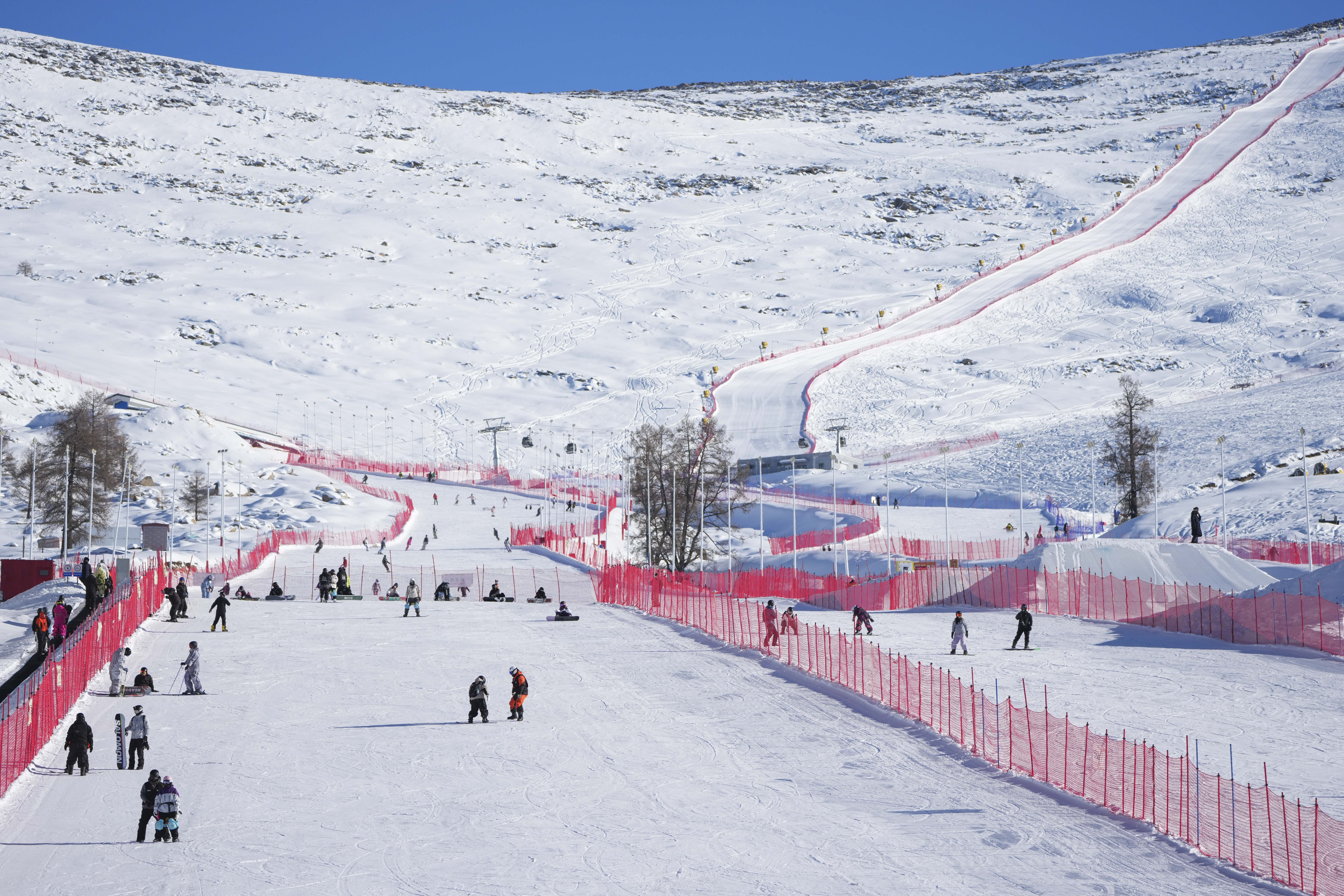1月17日,雪友在可可托海国际滑雪度假区滑雪。新华社记者 胡虎虎 摄