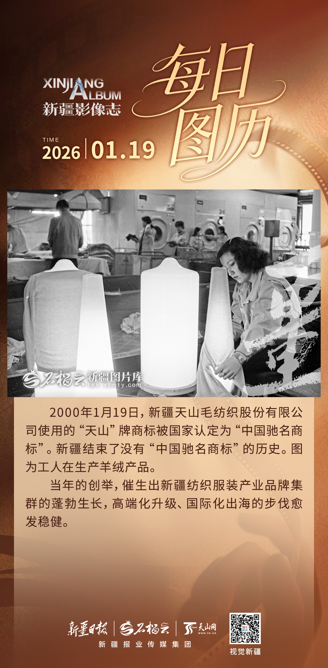 2000年1月19日,新疆天山毛纺织股份有限公司使用的“天山”牌商标被国家认定为“中国驰名商标”。新疆结束了没有“中国驰名商标”的历史。