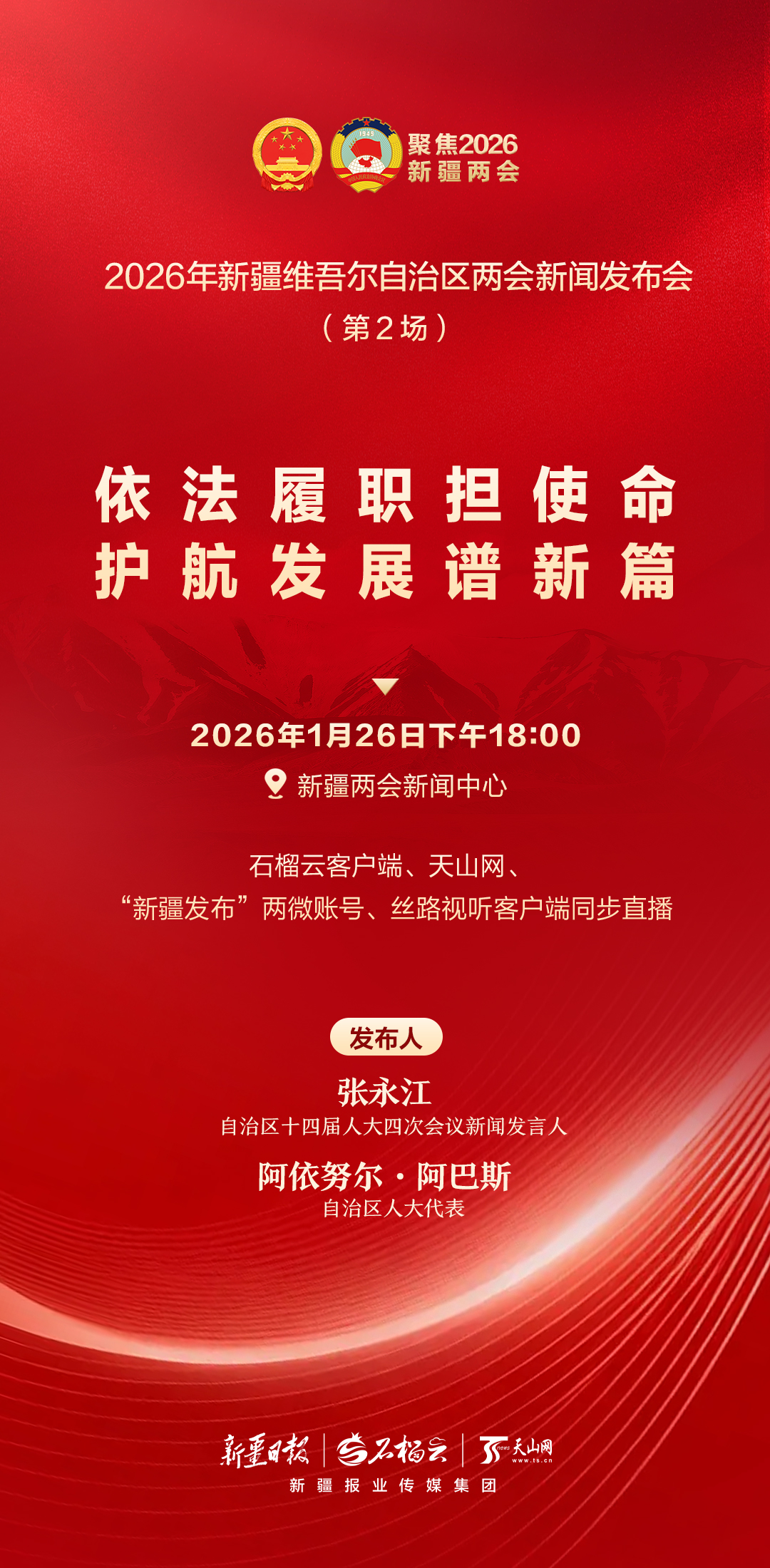 海报丨2026年新疆维吾尔自治区两会新闻发布会(第2场)——依法履职担使命,护航发展谱新篇