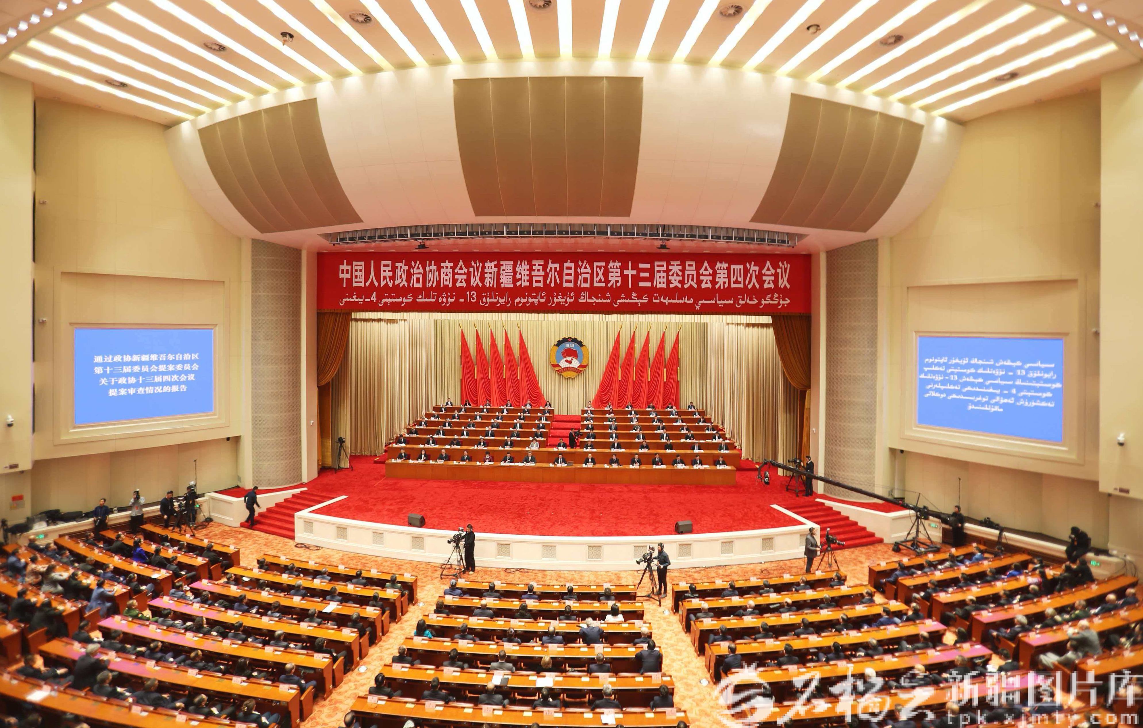 1月30日上午,自治区政协十三届四次会议圆满完成各项议程,在新疆人民会堂闭幕。图为会议现场。天山网-新疆日报记者 邹懿摄