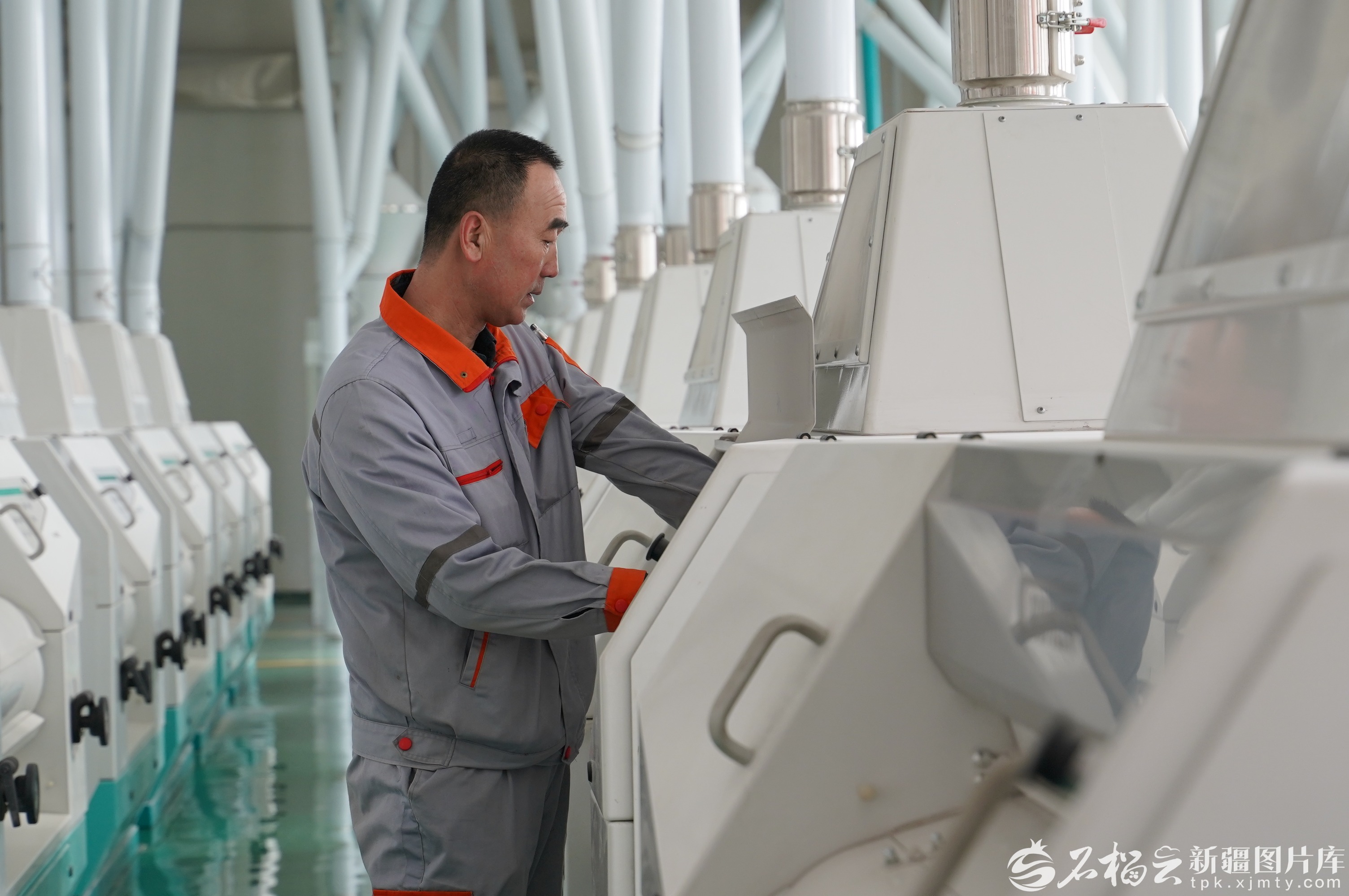 2月24日,新疆新粮华麦面粉有限责任公司生产车间,工人正在操作设备。李逸凡 摄