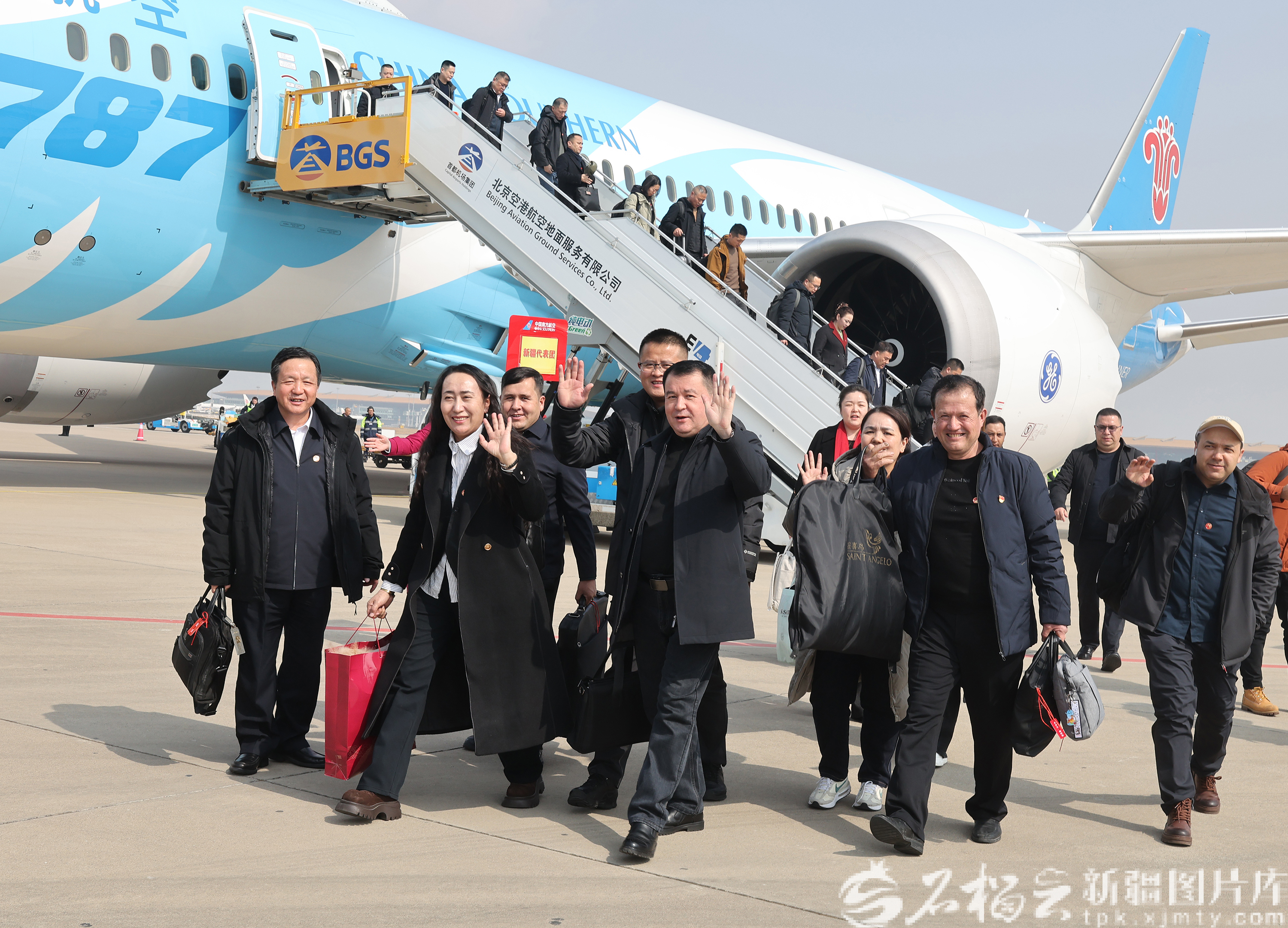 3月3日,出席十四届全国人大四次会议的在疆全国人大代表乘机抵达北京。天山网-新疆日报记者 崔志坚摄