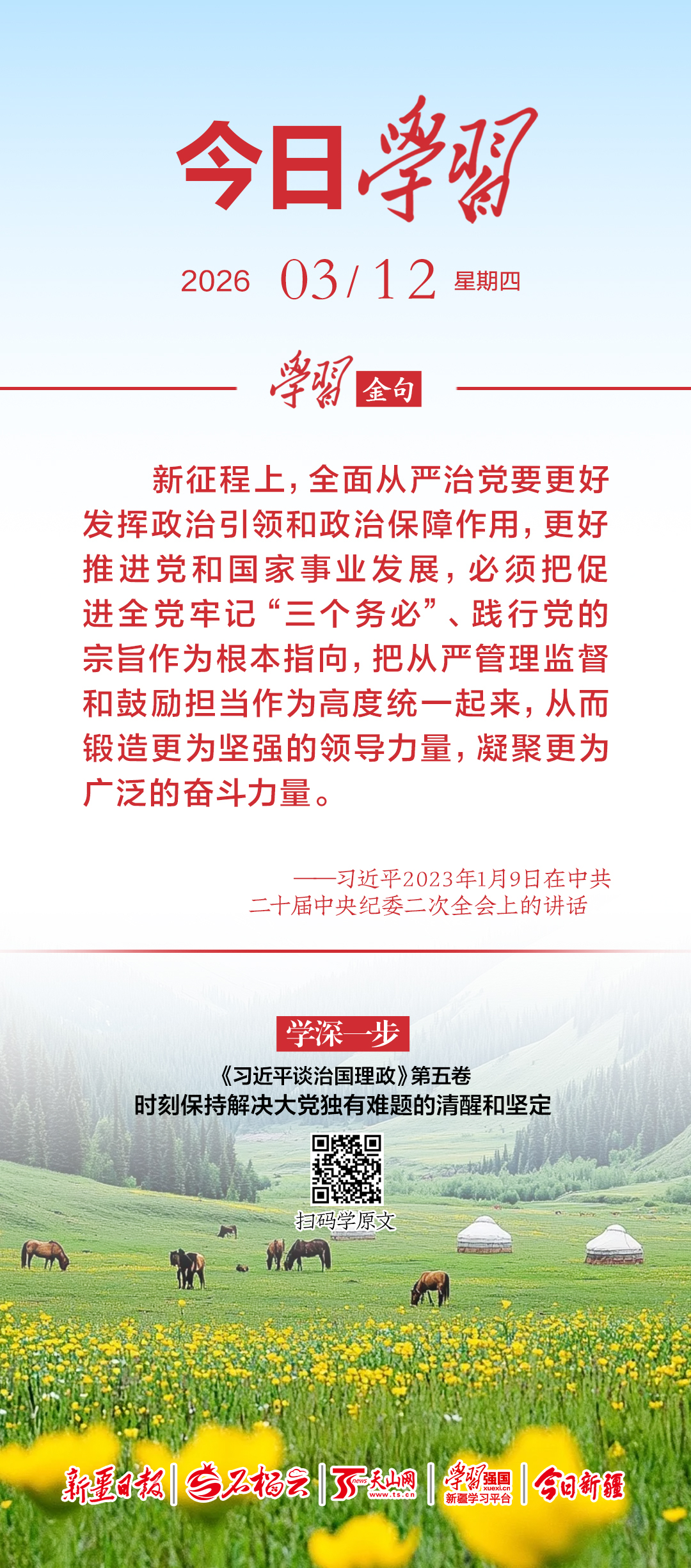 新征程上,全面从严治党要更好发挥政治引领和政治保障作用,更好推进党和国家事业发展,必须把促进全党牢记“三个务必”、践行党的宗旨作为根本指向,把从严管理监督和鼓励担当作为高度统一起来,从而锻造更为坚强的领导力量,凝聚更为广泛的奋斗力量。