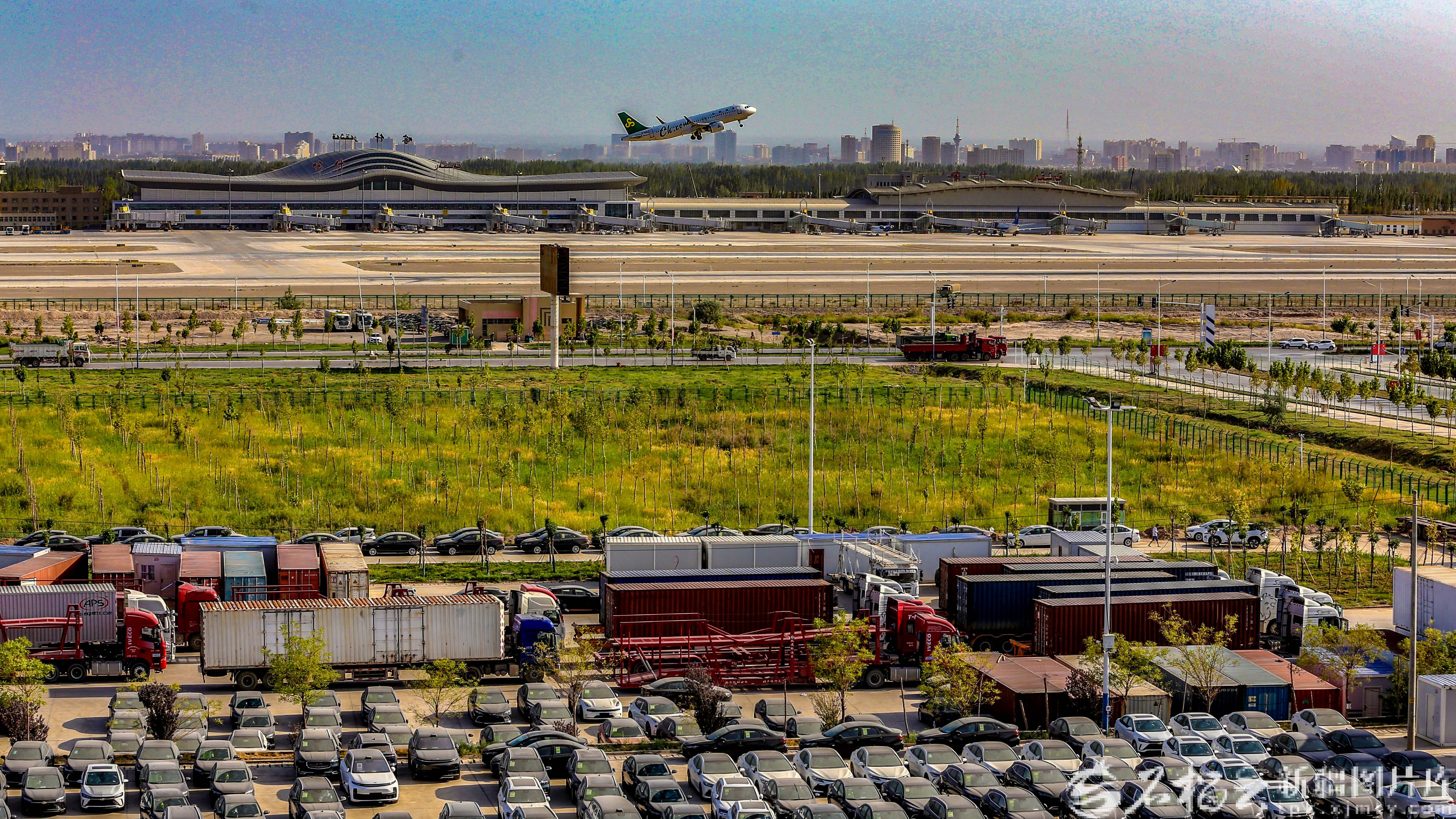 车辆从乌鲁木齐国际陆港区驶出(资料图)。石榴云/新疆日报记者 蔡增乐摄